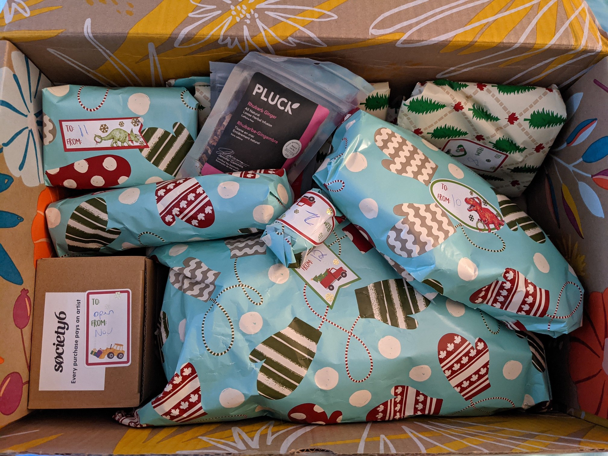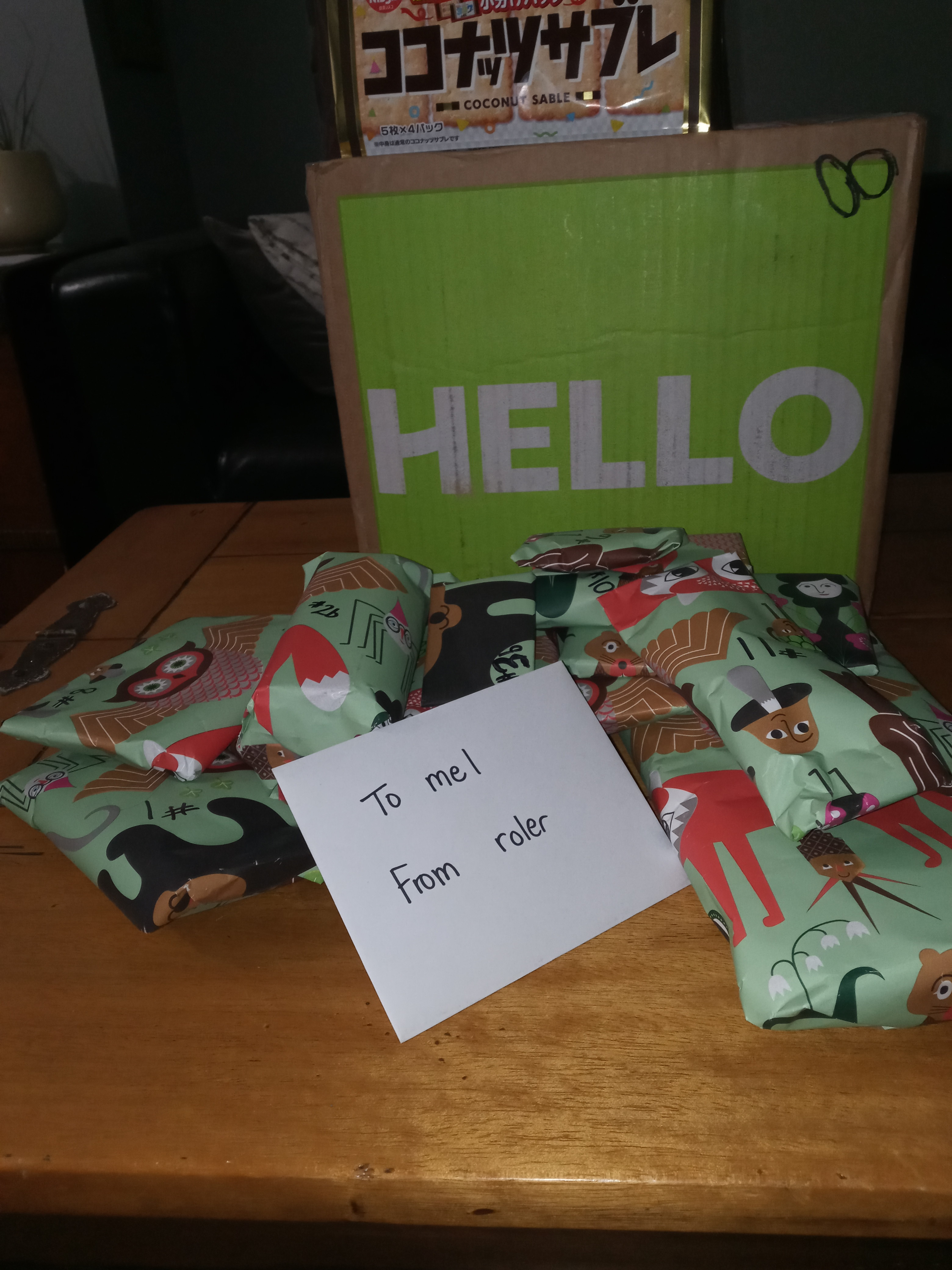 I did manage to trade parcels with Robin’s family, though she is still out of town so doesn’t get to open yet.