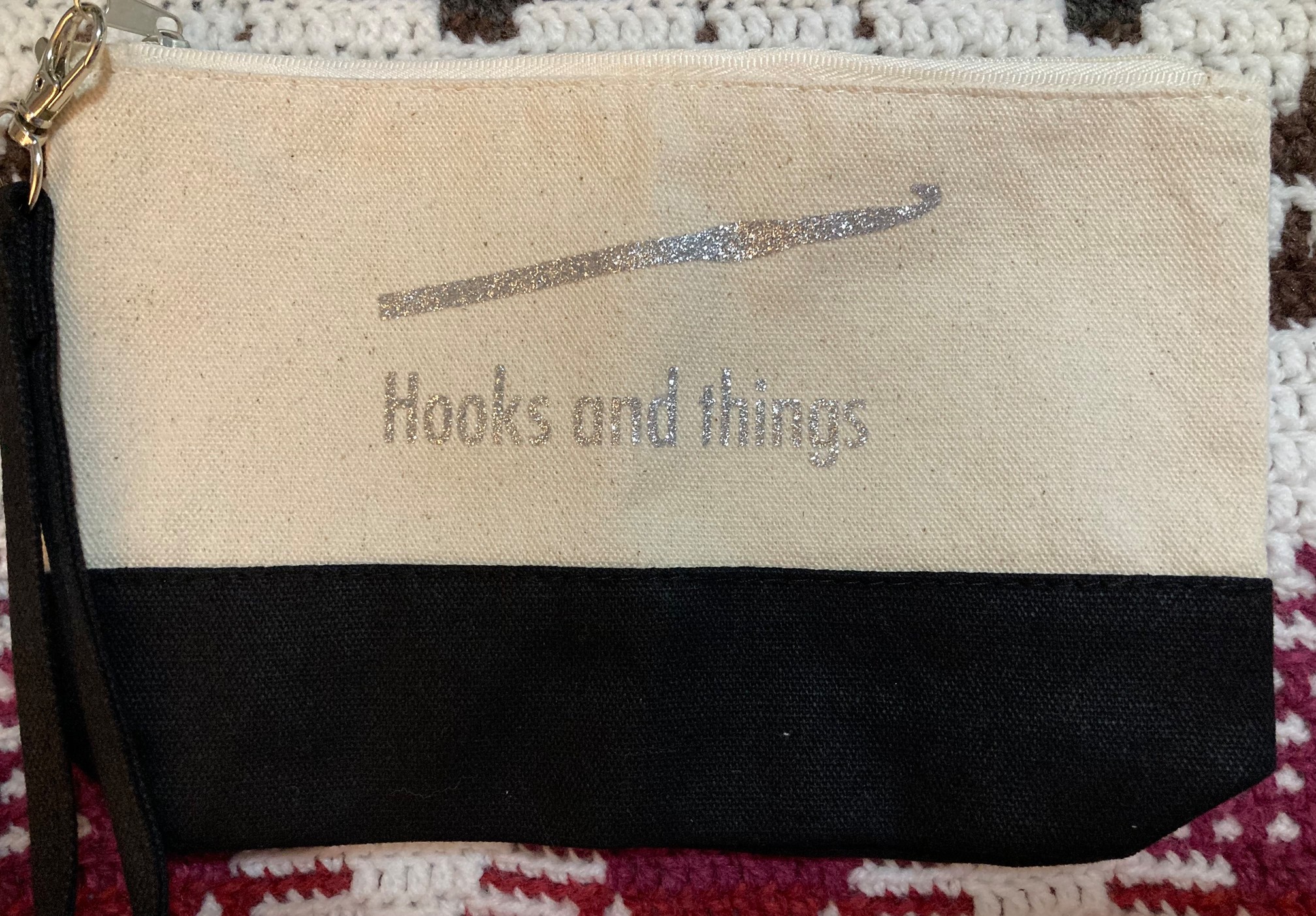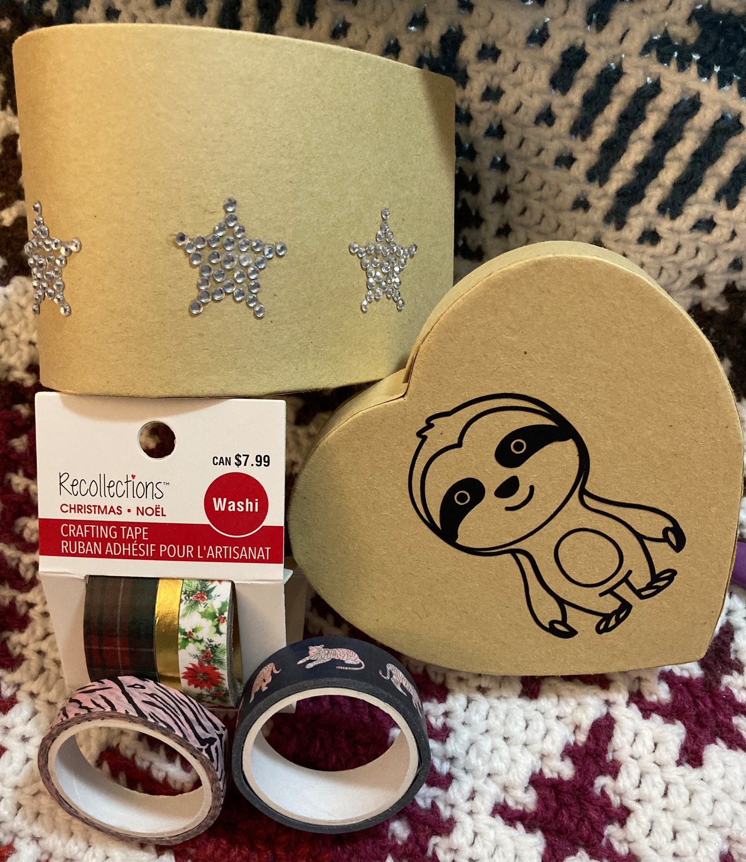 My husband saw the sloth box before I did, and yelled, “OMG! That is so awesome!!!” I was busy pulling the second wrapped package out of the gift wrap, which was the equally awesome crochet hook bag. I love that the bag feels heavy duty, so it should easily withstand the weight of multiple crochet hooks, tiny scissors, etc.