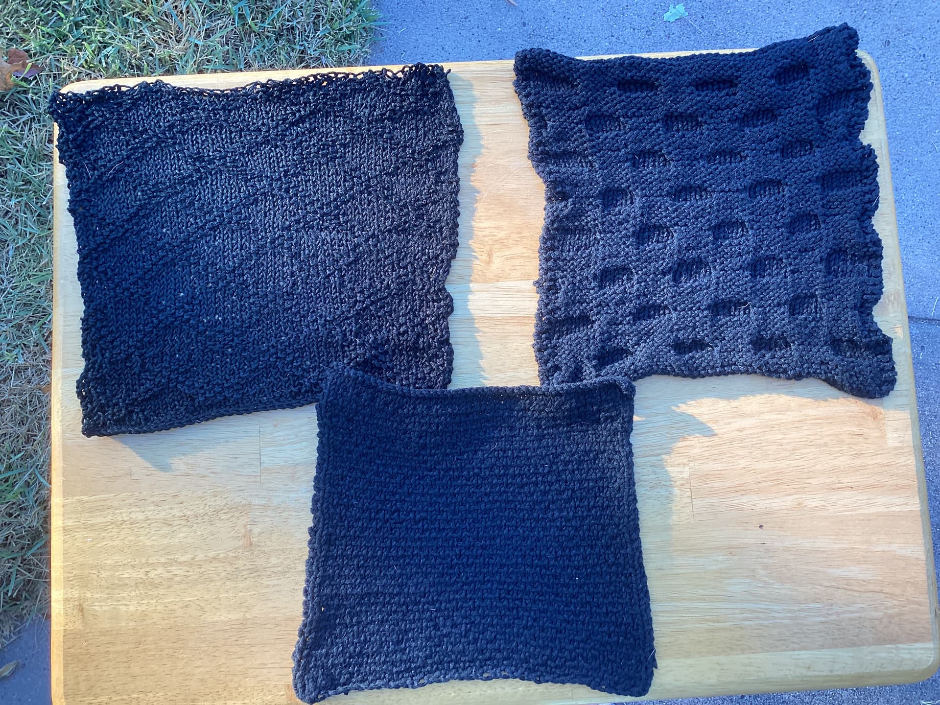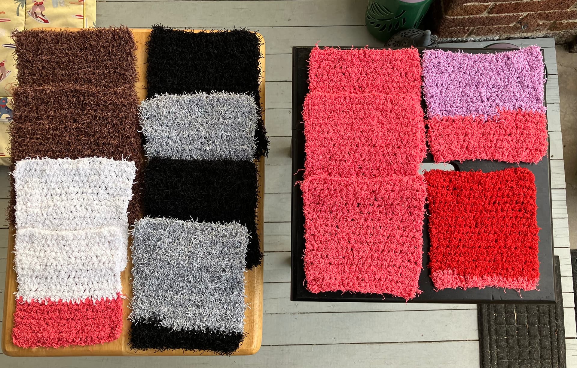 I also used up more black soft cotton/cotten blend yarn I found in my stash. I made more makeup removal washcloths. My MIL requested more for her friends, and I sent 6 to my female relatives in Virginia (I forgot to take a photo of those):