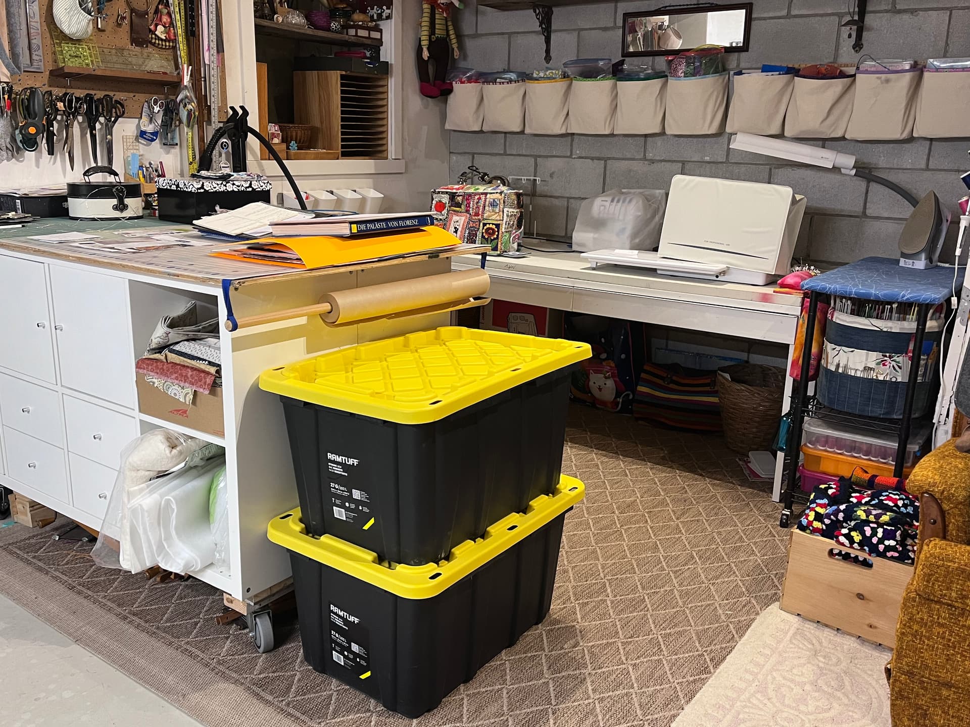 This belongs in 2025 but I just finally rearranged & opened all the bins. These 2 large ones are ALL the fabric stash I currently have, not including scraps in 6 of the canvas hanging baskets in the background. Quite a bit of the fabric is designated for projects too, and whatās not is stuff that came to me & isnāt precious so I may not even keep it.