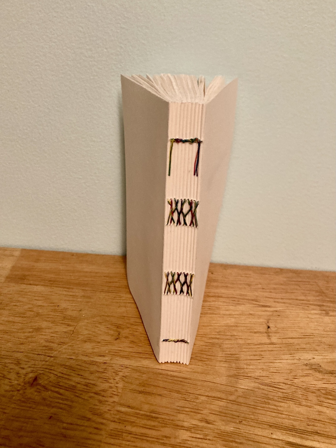 Day 9: cased in a book and folded/sewed two more. I need to get some better press boards for squishing.