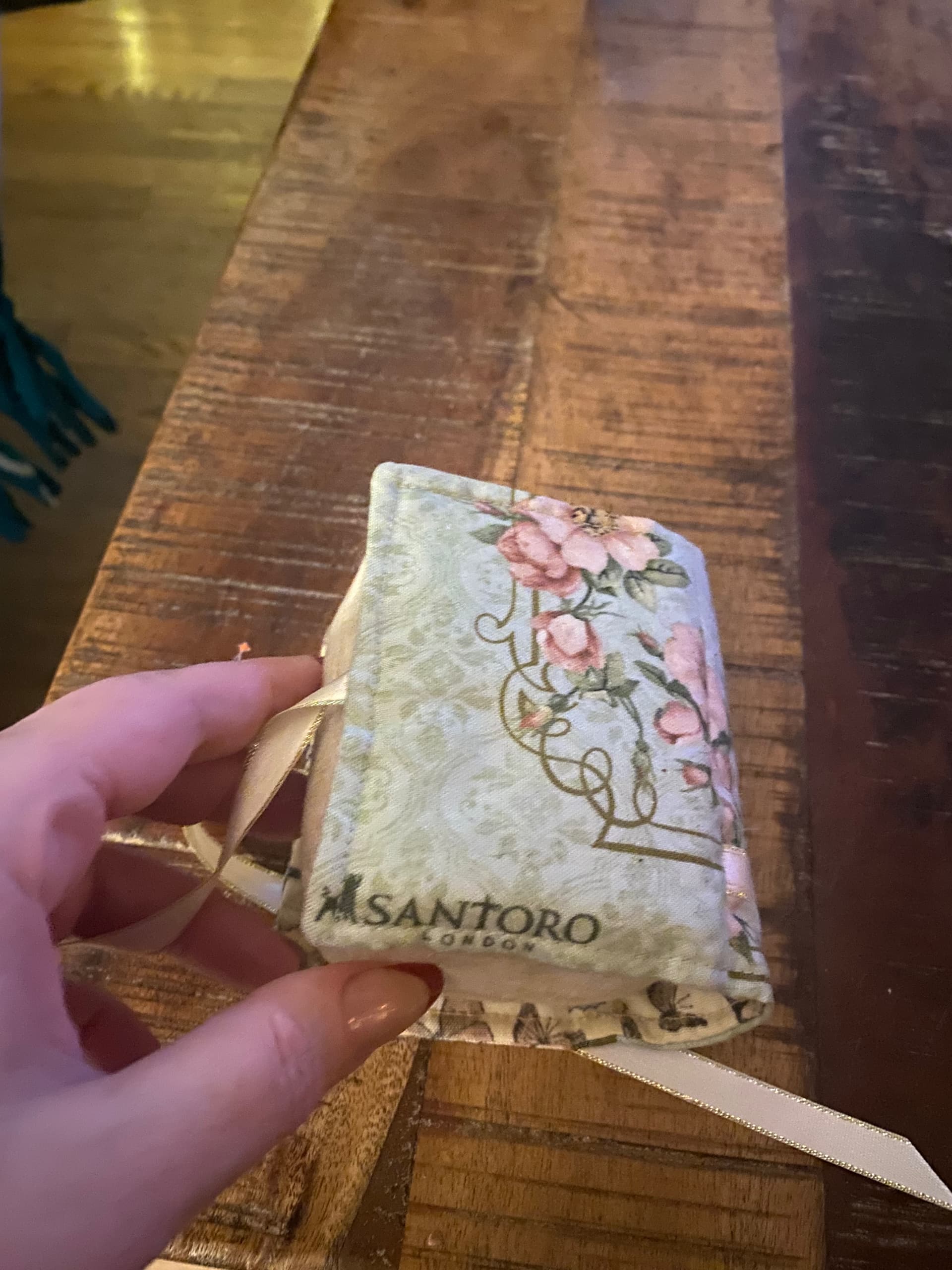 Here is my package from @Bunny1kenobi! I apologize for it being a bit dark in the photographs. By the time I finished wrapping presents yesterday (I had used the package as a treat to finish), it was dark. Too dark for photos. This morning was alright, but I had to skedaddle. I’m currently on my phone in the car passenger seat.