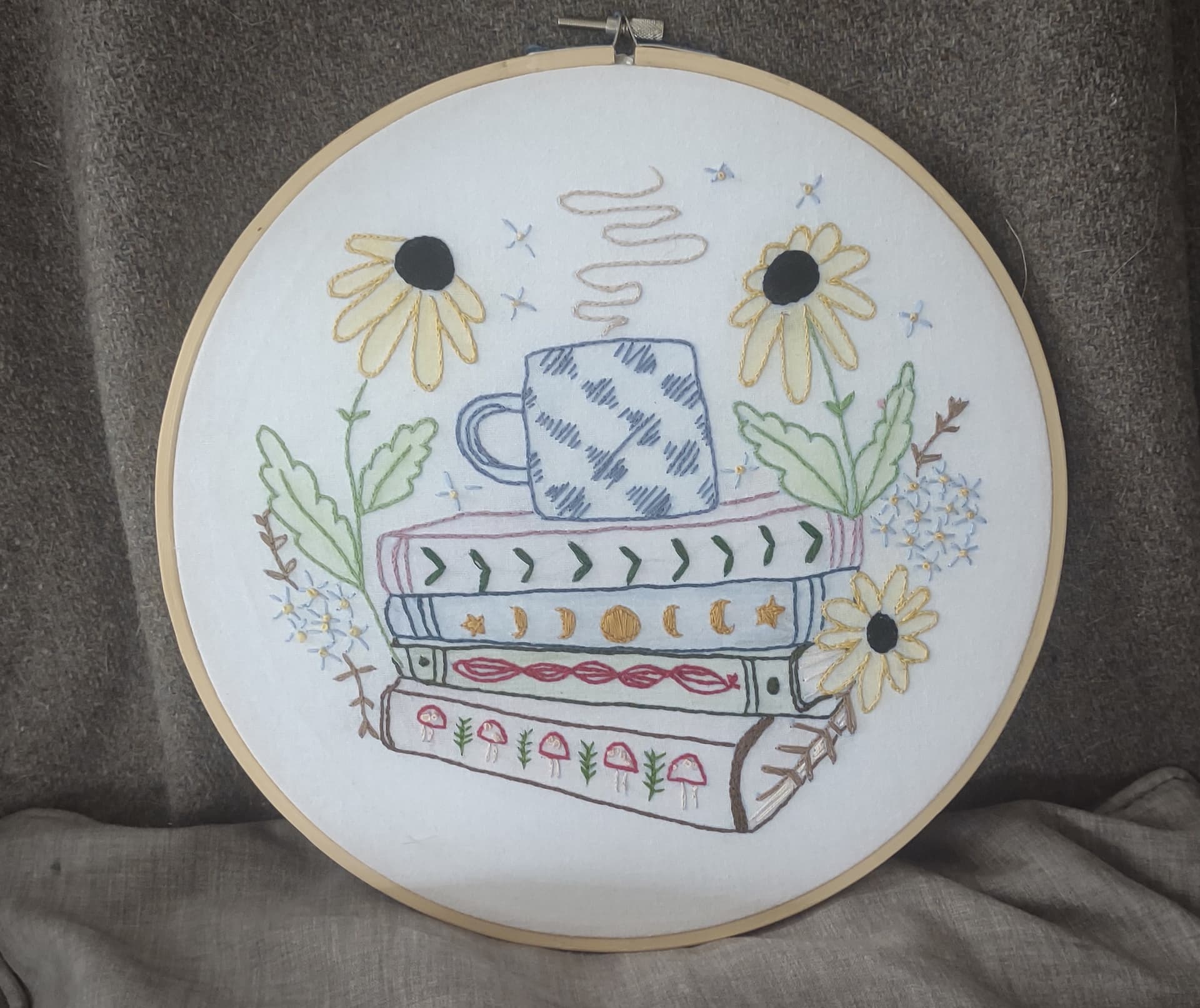 I got very spoiled with not one crafty goodie but two! Check out this fabulous hoopla that feels very summery and wonderful:
