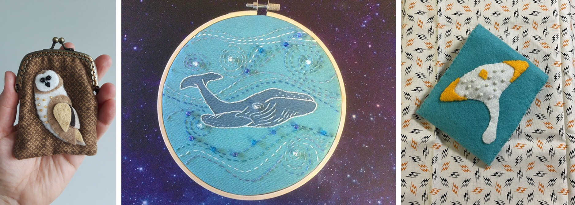 Barn Owl Coin Purse, Whale Embroidery, and Sky Manta Tea Wallet by @Camelama.