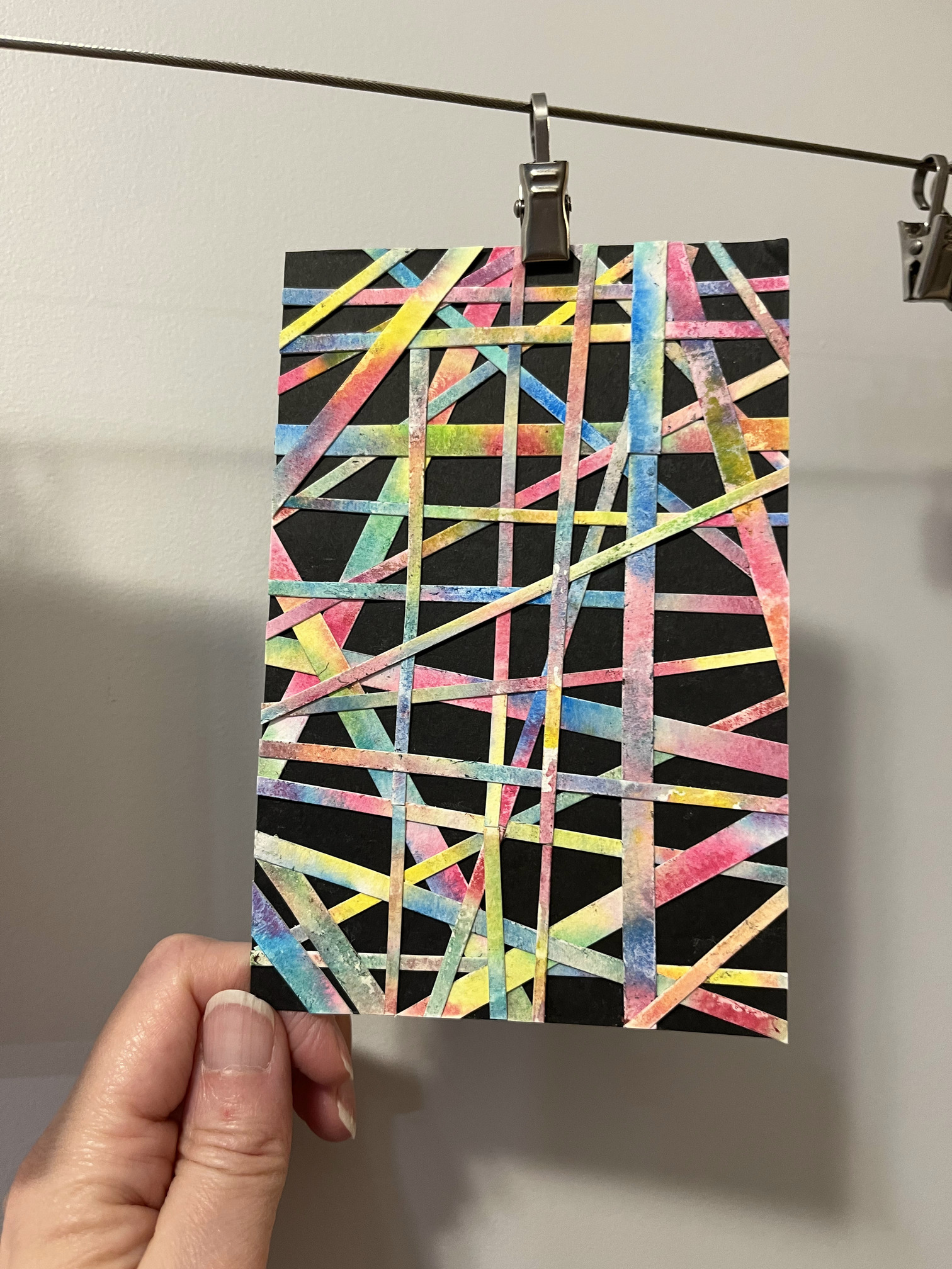 And from @Cindy, keeping up on the weaving theme, I got this awesome, randomly woven watercolor gem. It just pops off of the background so well and is so interesting to look at. I love that she and @AuFish both did weaving for me and they’re both so different and unique!