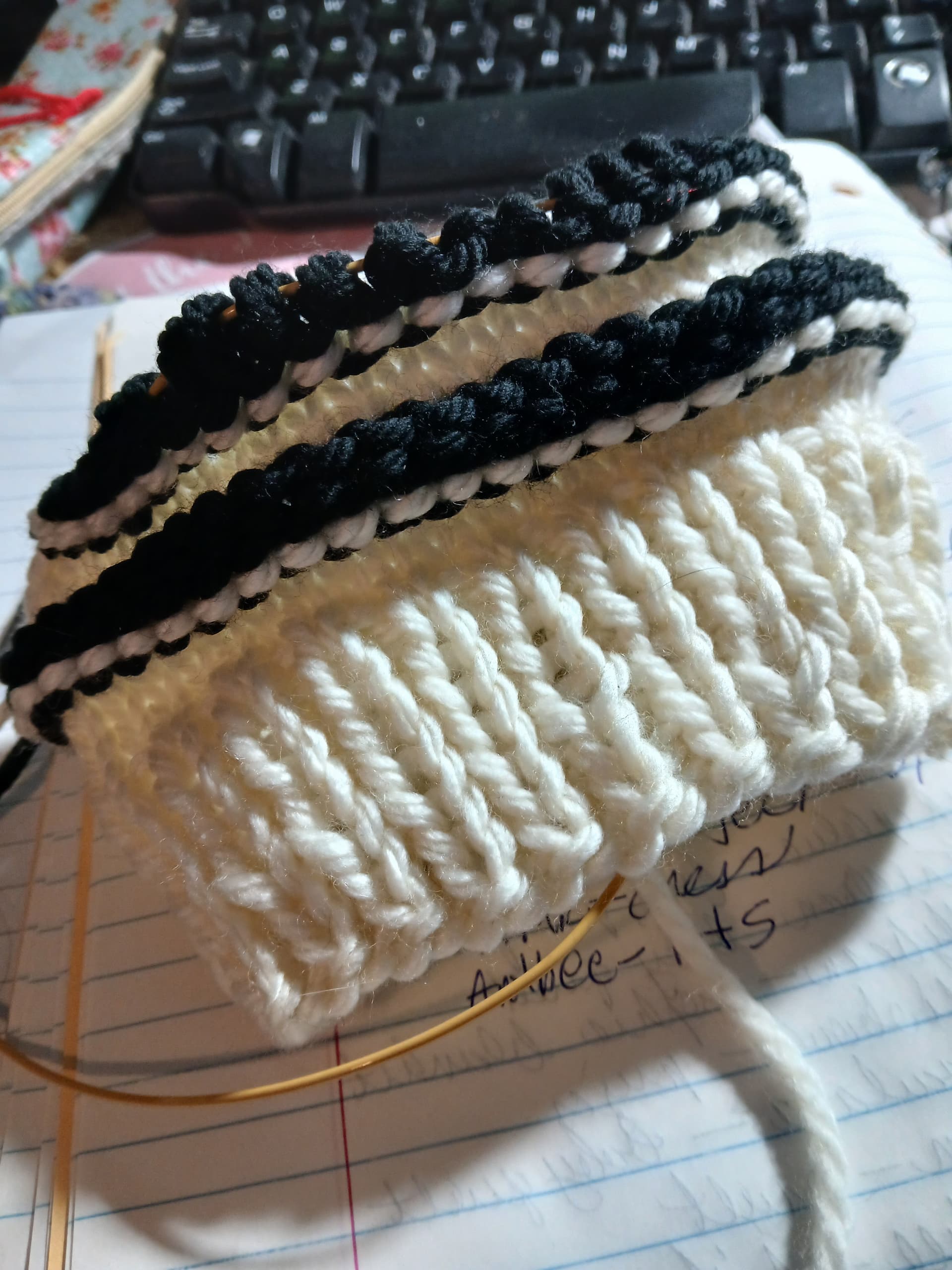 And, then there are these leg warmers that I started last night because I decided I needed black and white legs…