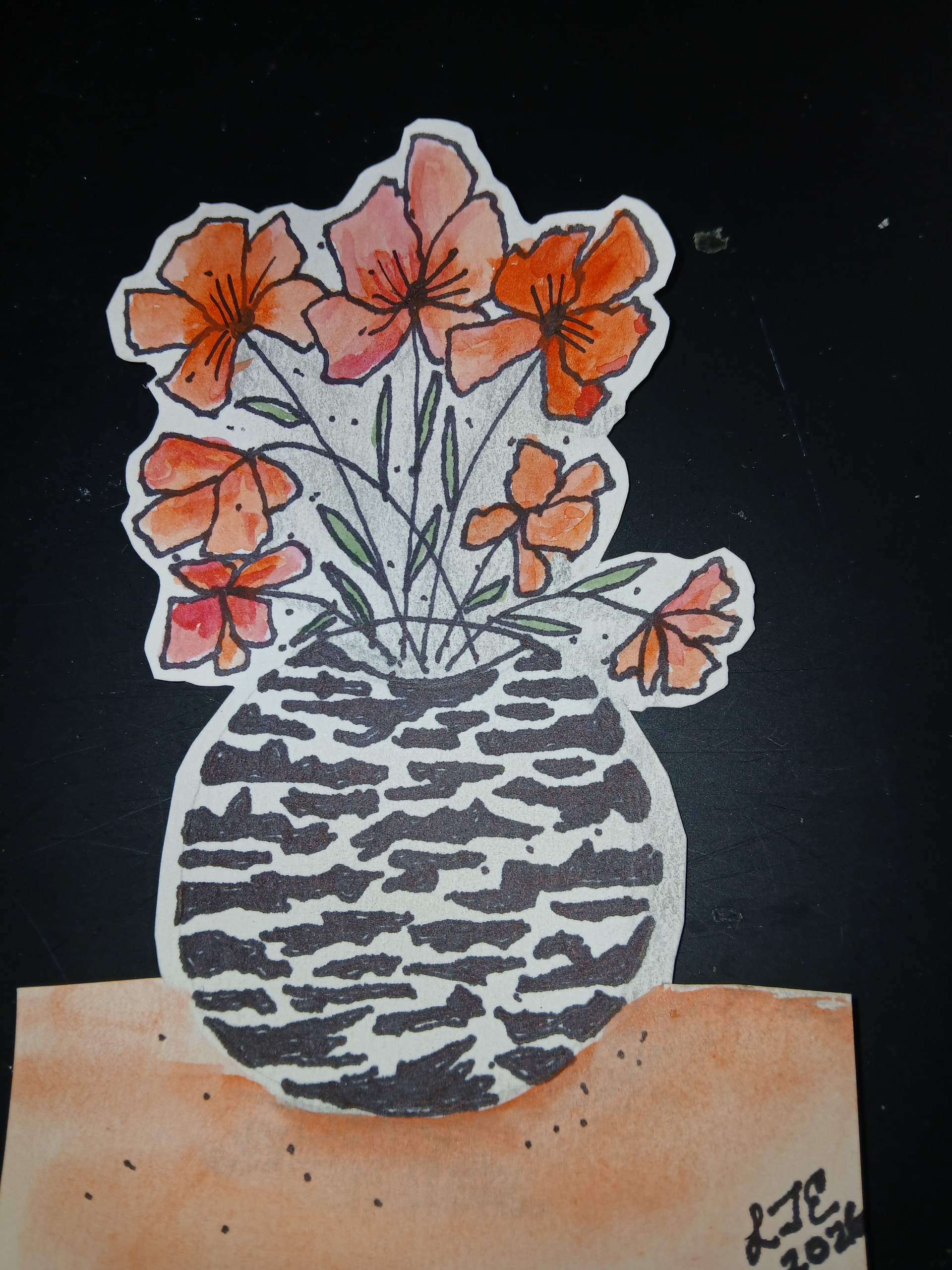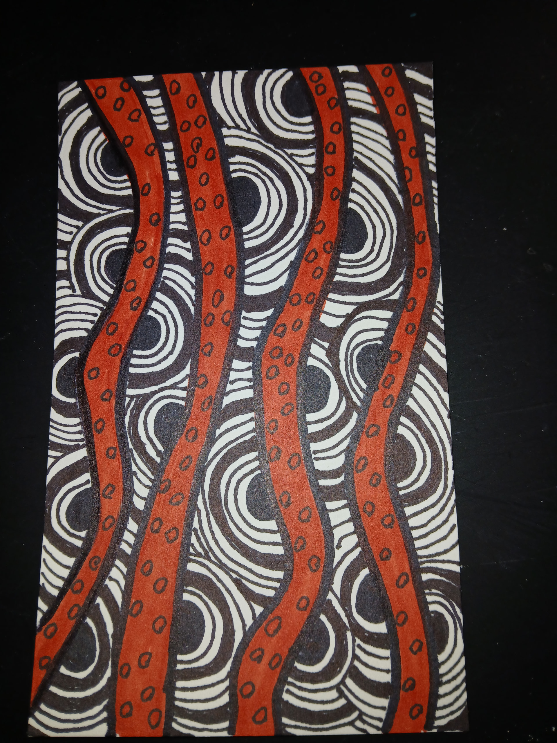 I have hundreds of zendoodles in my Pinterest account. I decided that I would try a few every month so I can delete them. Most are just too complex for me or take more patience than I have. This one was fast, easy and only needed two colors! (notice: they are the same two colors as my little flower drawing… I am certainly avoiding doing that last tax return…