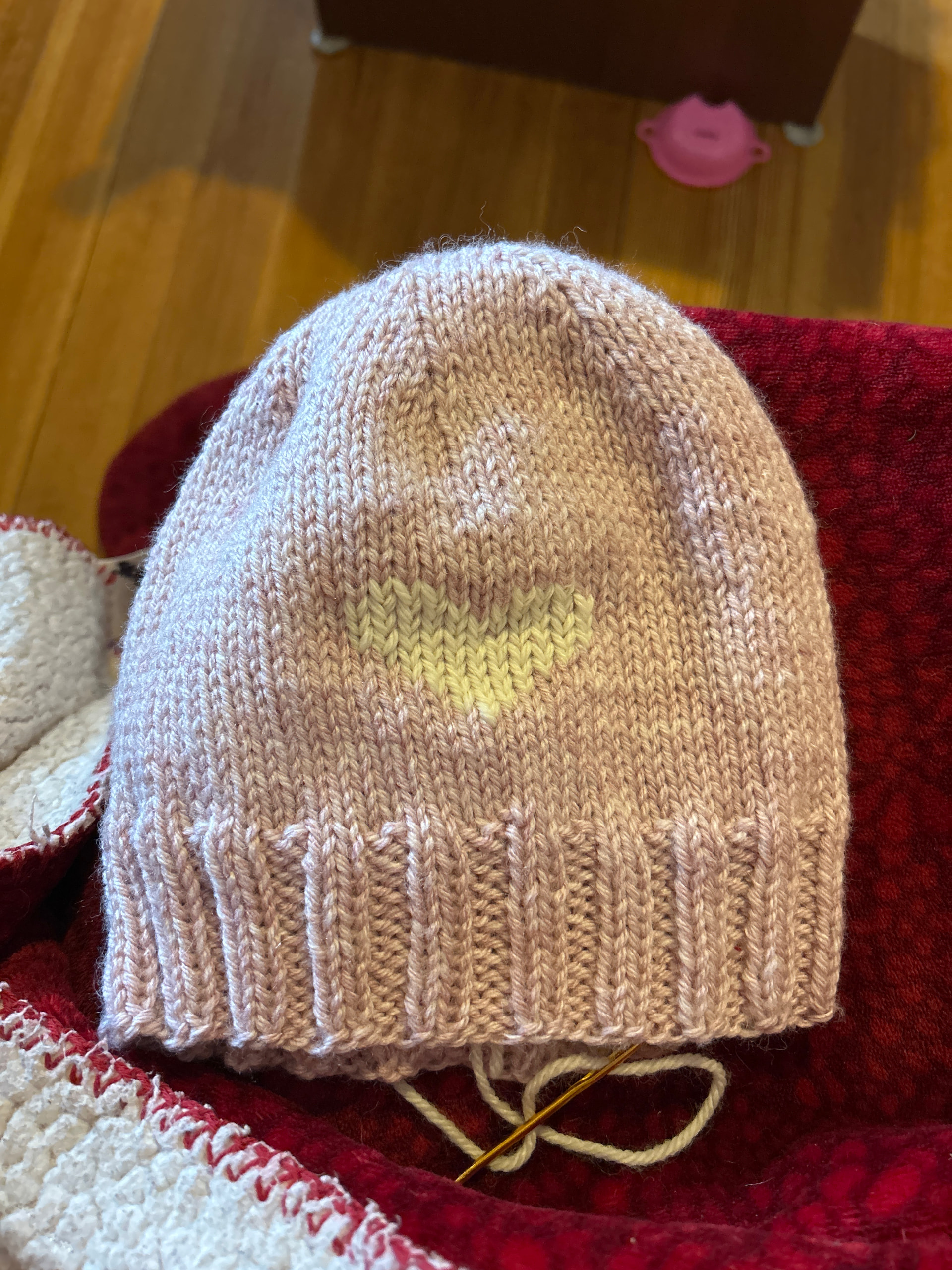 Duplicate stitching the heart embellishment for Kidlet’s latest. I still have yarn left over from the sweater so now she wants mittens or leg warmers. I’m trying to sway her to the leggies because it would probably finish up the yarn and just leave some for future mends. We’ll see.