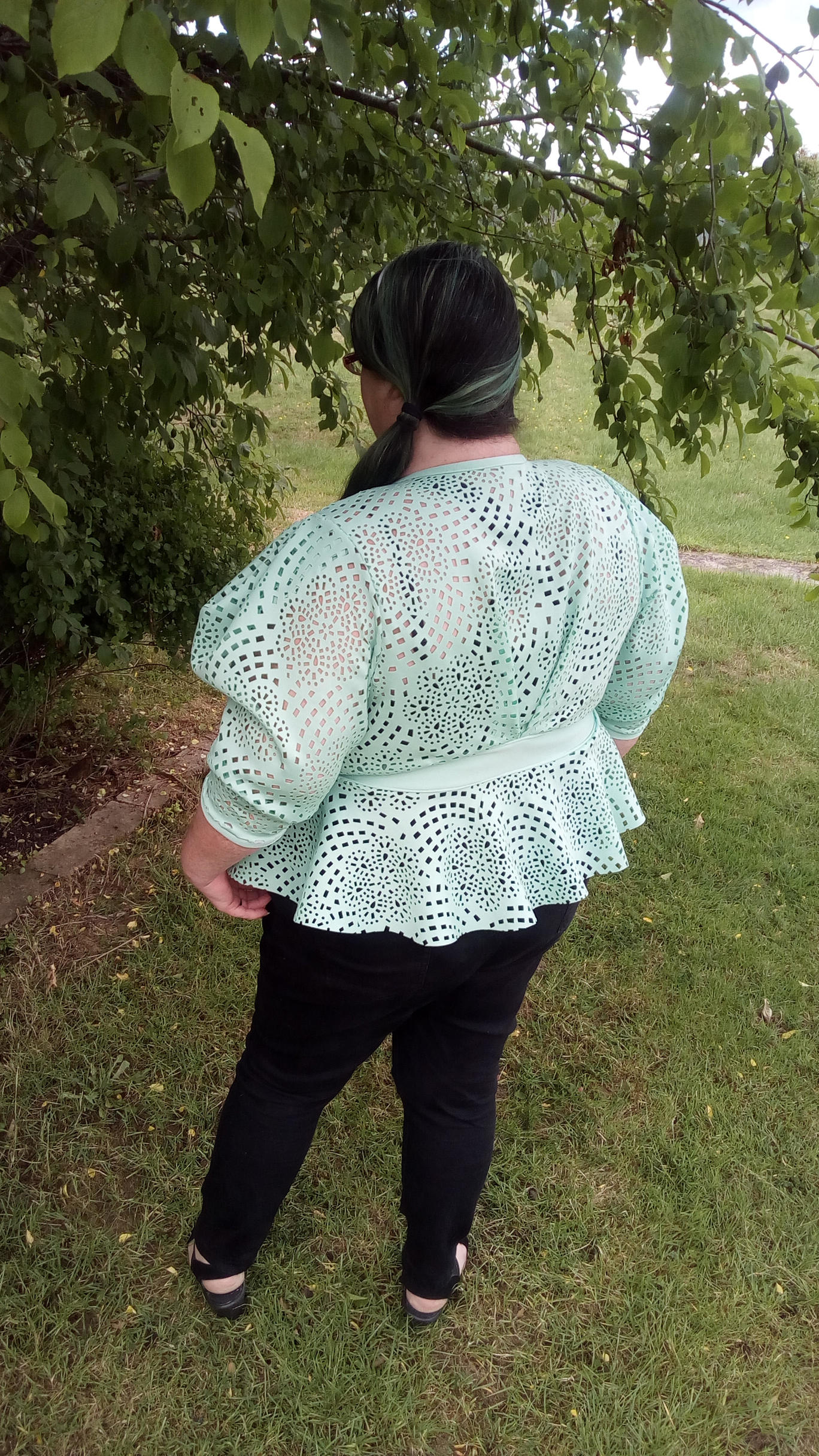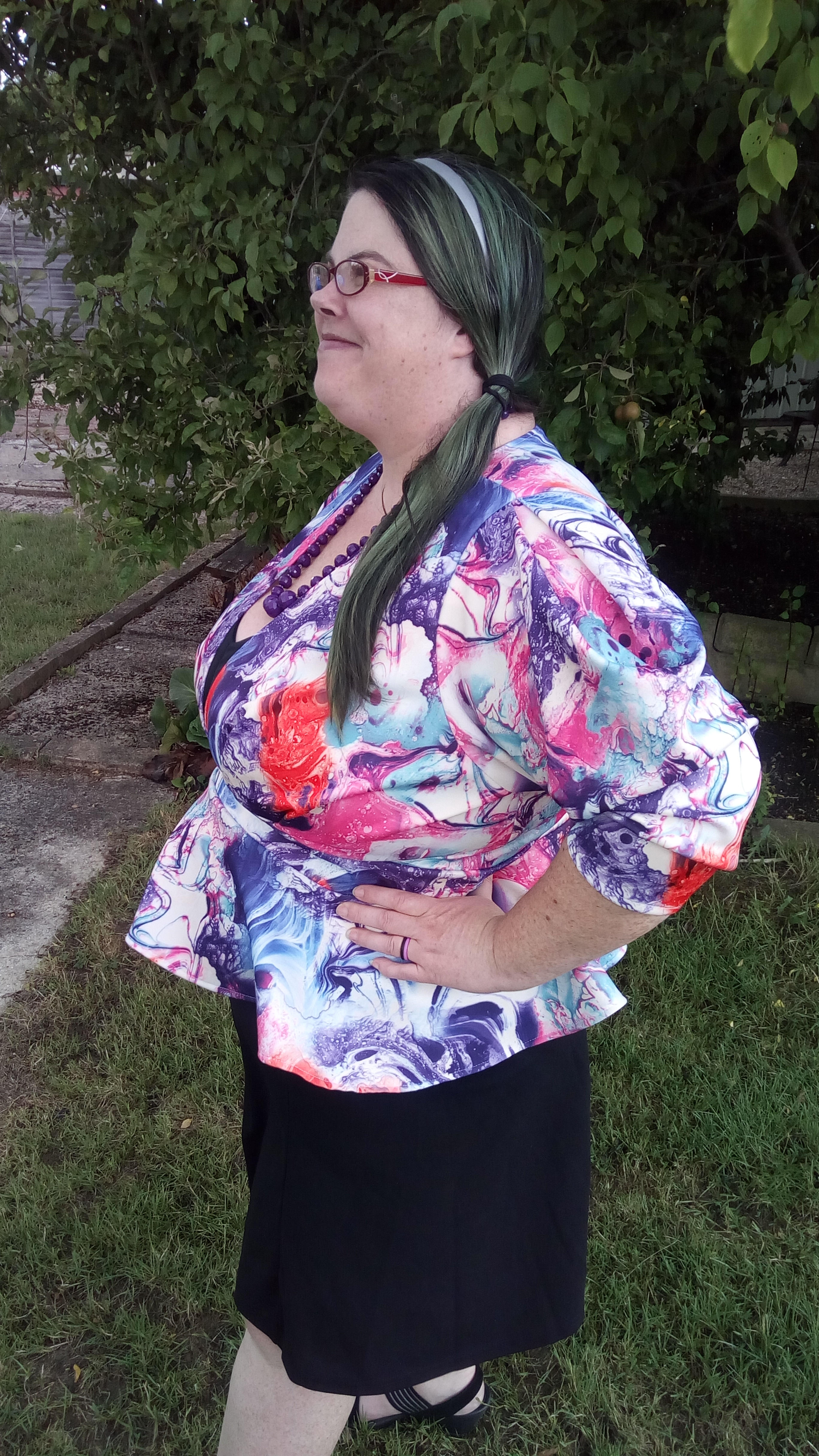 Sooooo, I got a bit crazy…I picked a pattern a bit out of my comfort range of clothing styles again… I was a little worried a peplum might amplify the already poofy tum, and the poofy sleeves might amplify my already oversized upper arms, buuuut I think it works. Either that or it makes me look even crazier than I am