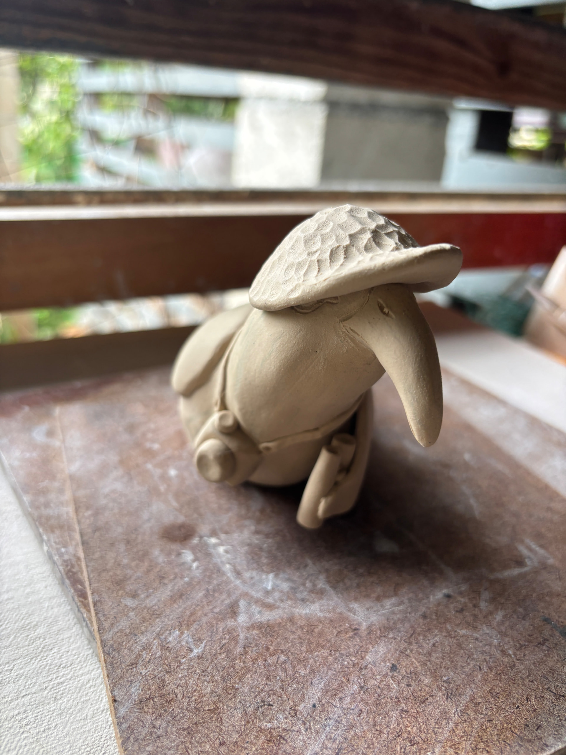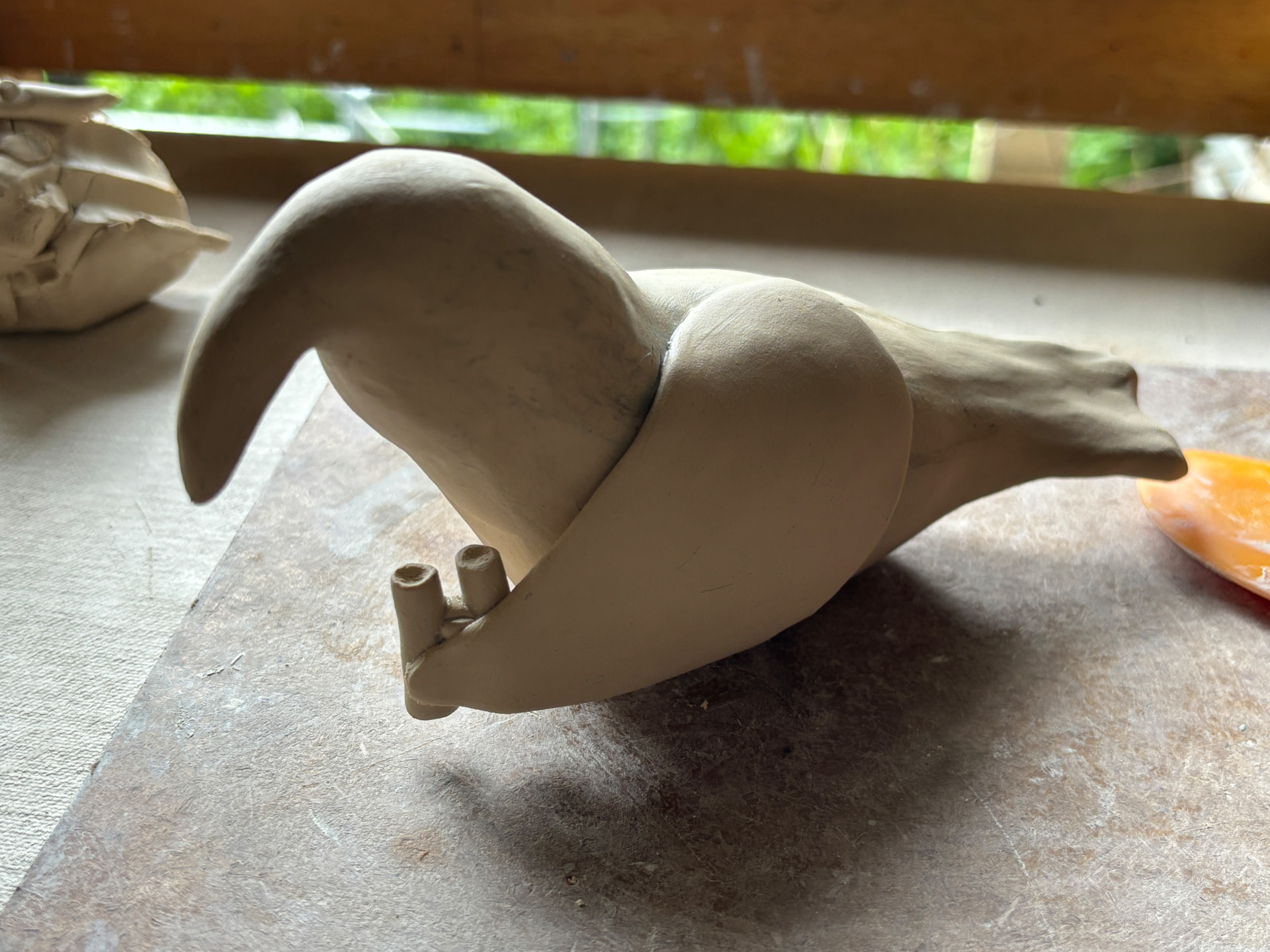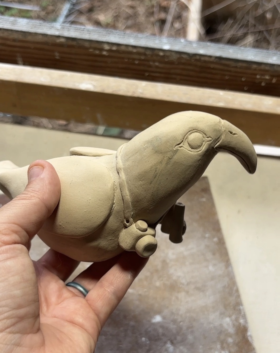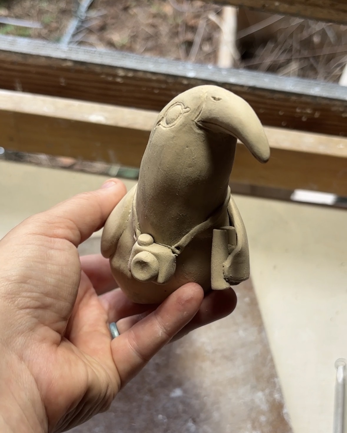 I thought anout trying a different medium, especially since I fire my clay atuff at a community studio, so I was worried the timing wouldn’t work out (or something might get damaged in the process) but I went ahead with handbuilding the birb in procelain, and it was actually finished on time!