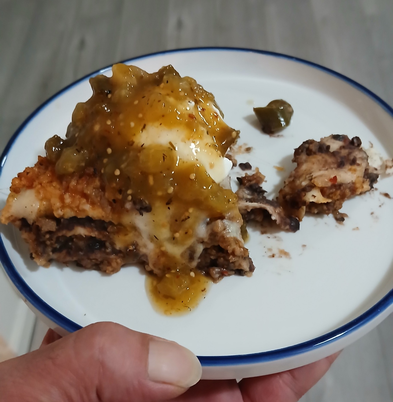 Found a use for the last bit of refried black beans and the spanish rice I had in the freezer.
