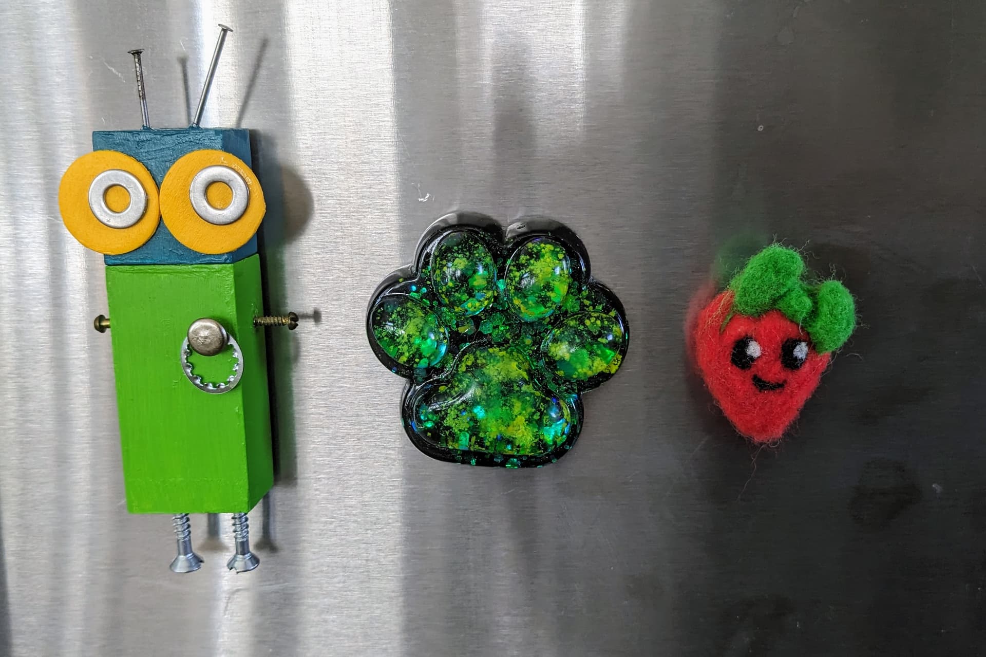 That made me laugh. All three are fantastic. I love that the robot and strawberry had some family help as well. Resin intimidates me so I’m super impressed with your dog paw!