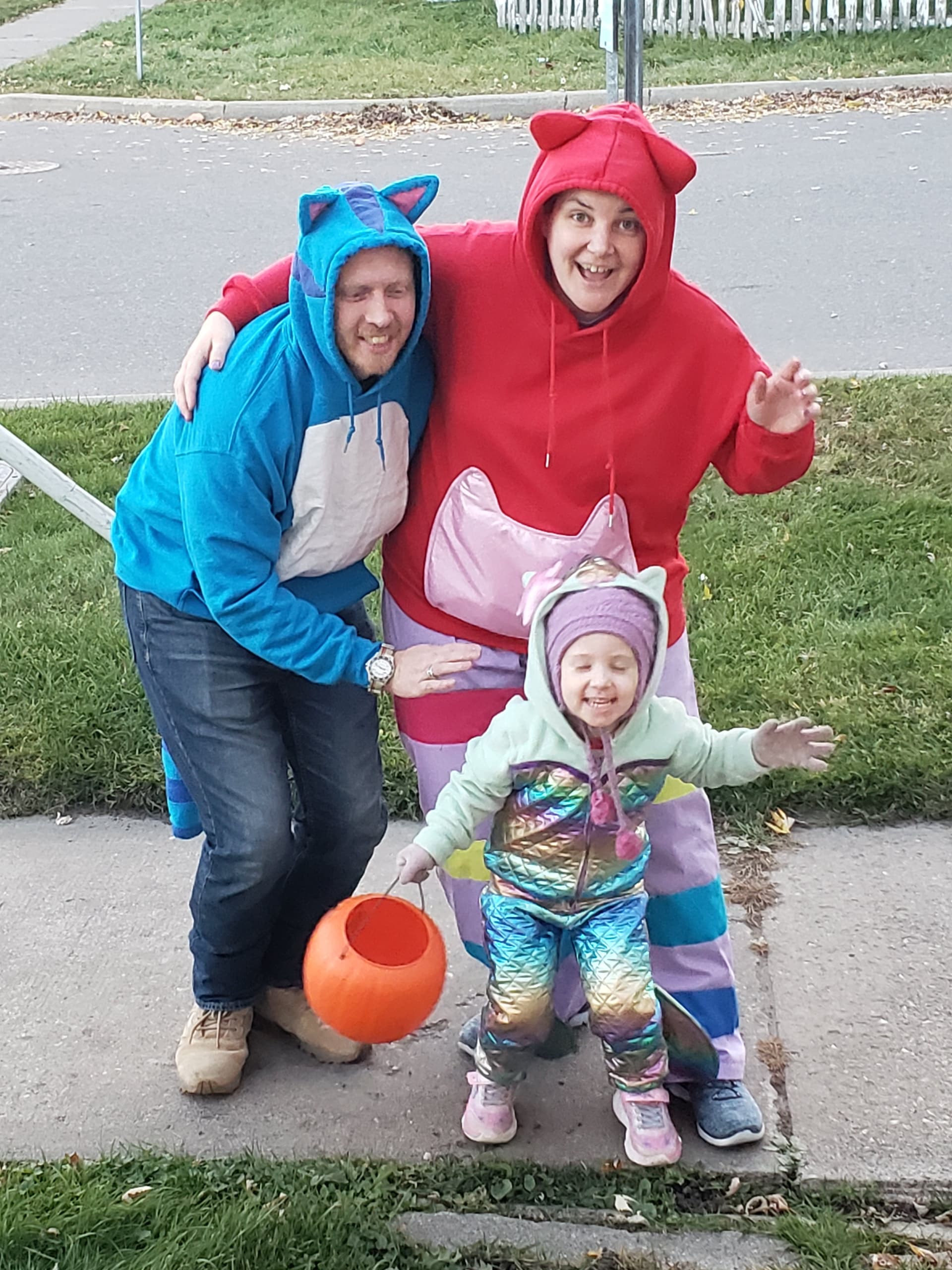 The year in review post reminded me that I never did post 2025’s crafty costumes. Our little one has been pretty obsessed with Gabby’s Dollhouse for a year or so now, and so it was only fitting that she was her favourite Gabby Cat for Halloween! Then, out loud, I foolishly said “maybe mom and dad should be their favourite Gabby Cats too!”