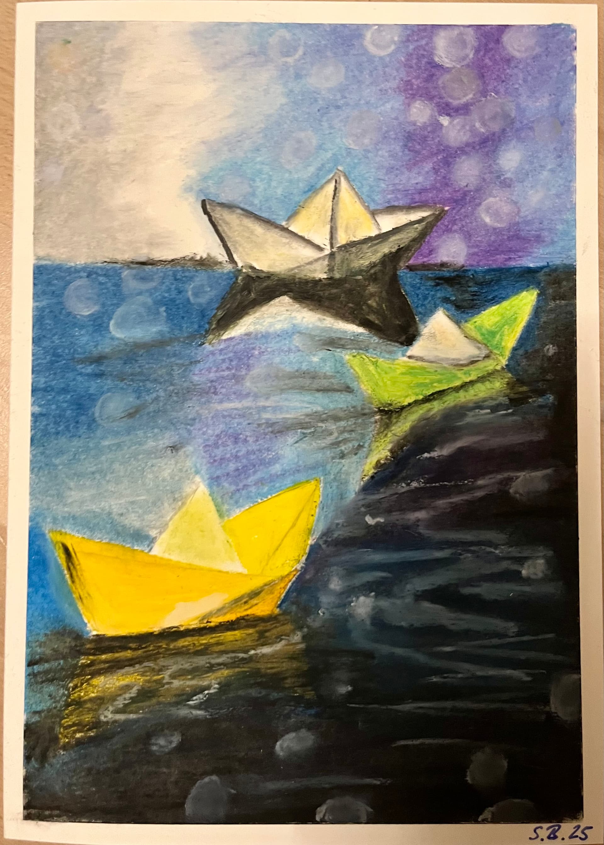 You’ve been very productive with your oil pastels! I think the paper boats and the snow landscape are my favorites.