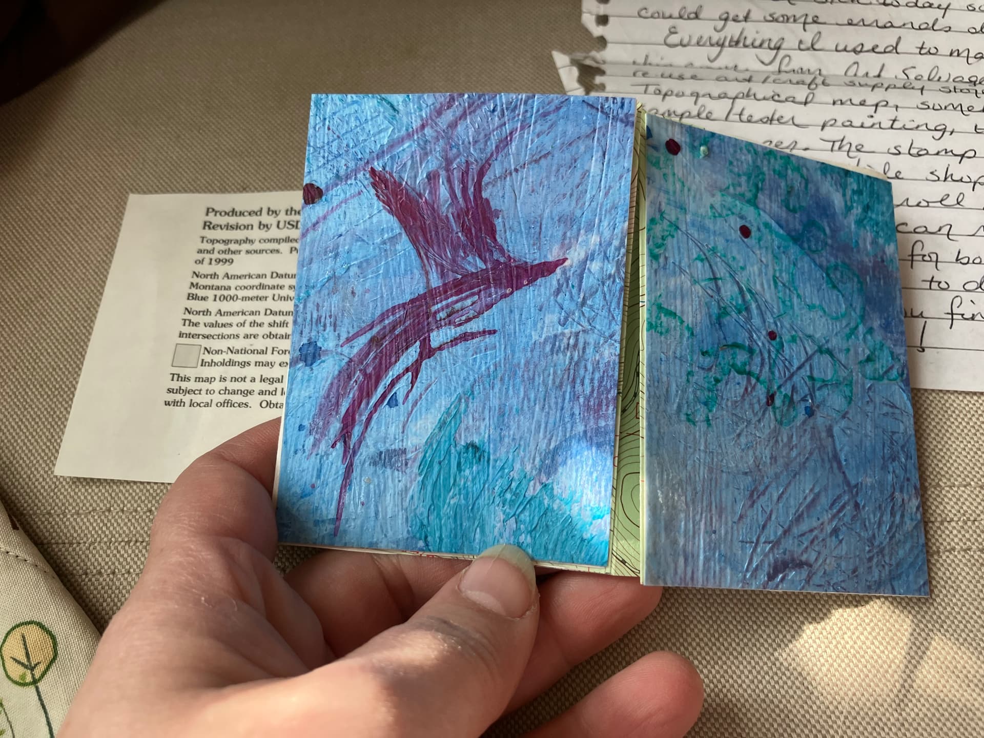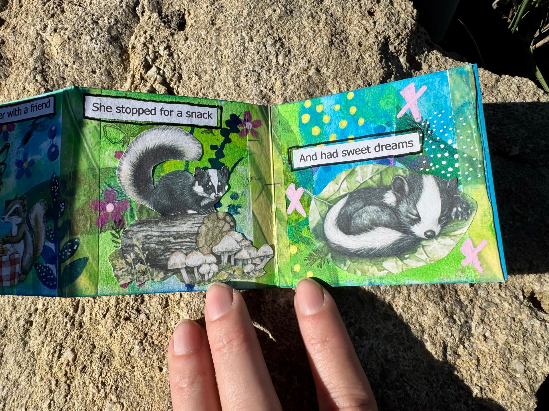 I especially love the colors and the shape of the book! It’s so cool how the book itself is a landscape! Thank you for swapping with me!