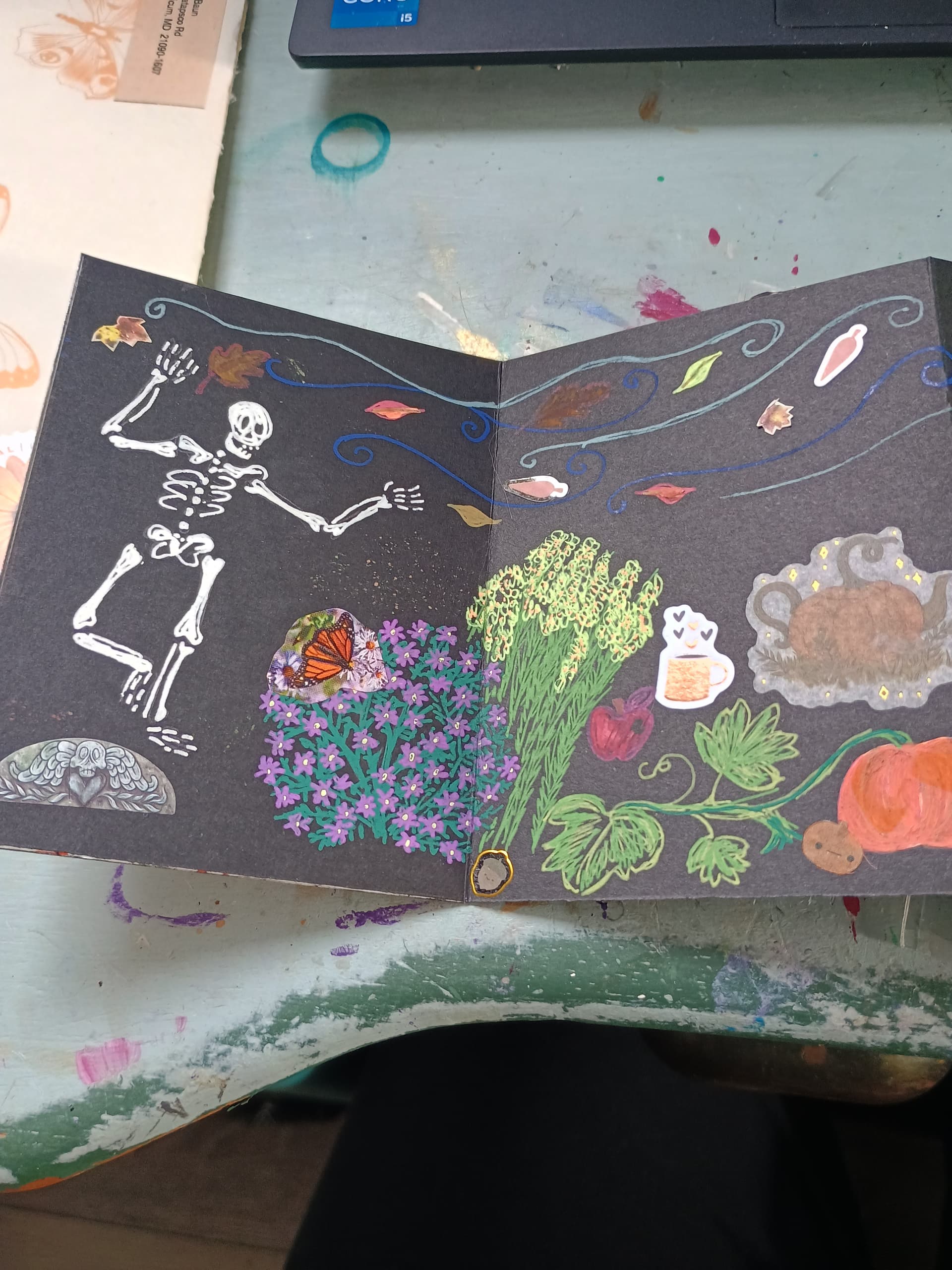 ETA: I was still a bit unwell when I posted this so wanted to add and highlight how cute that skelly is, the myriad of autumnal delights and the Monarch butterfly story. There is so much to see and I love looking through it