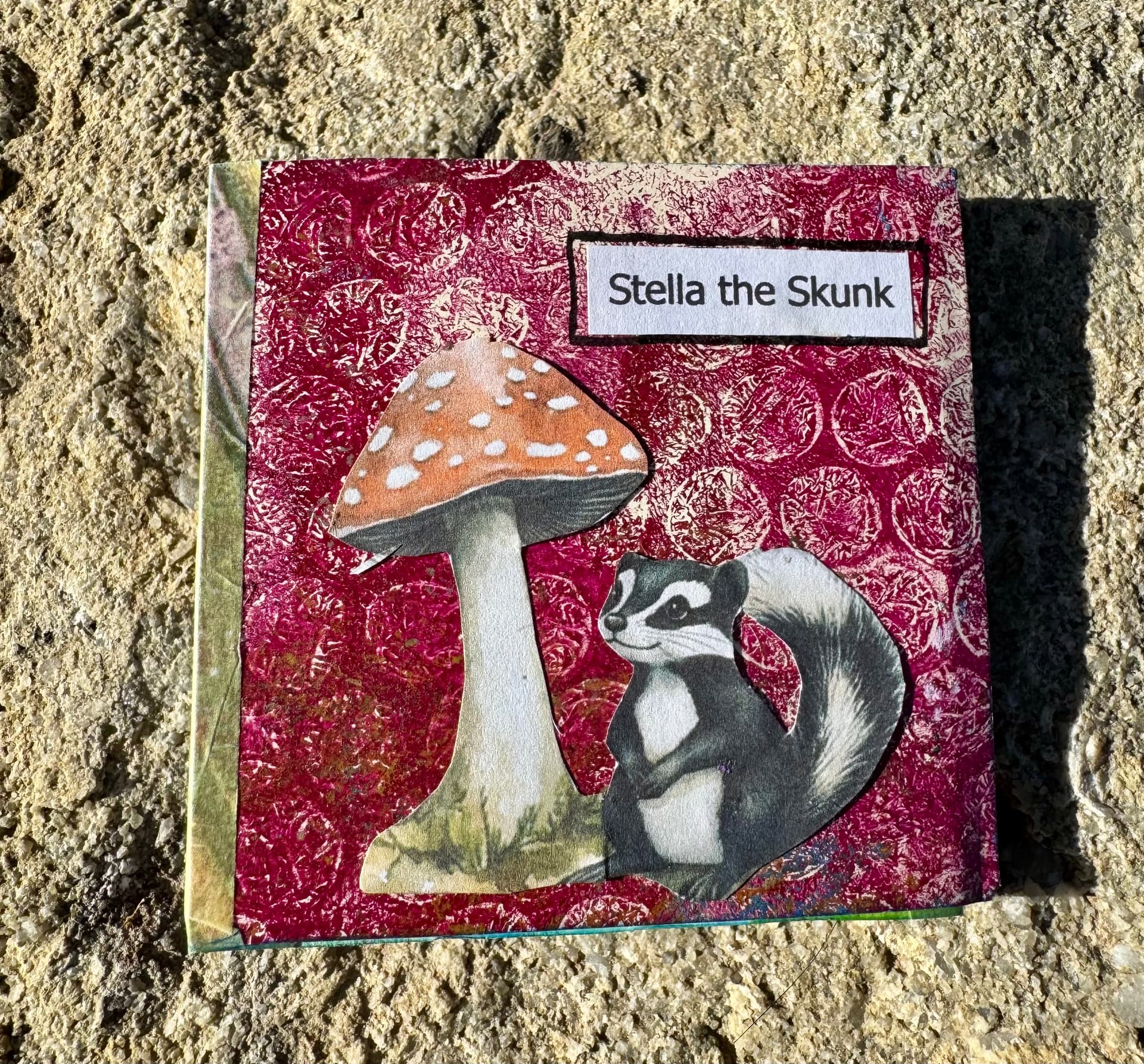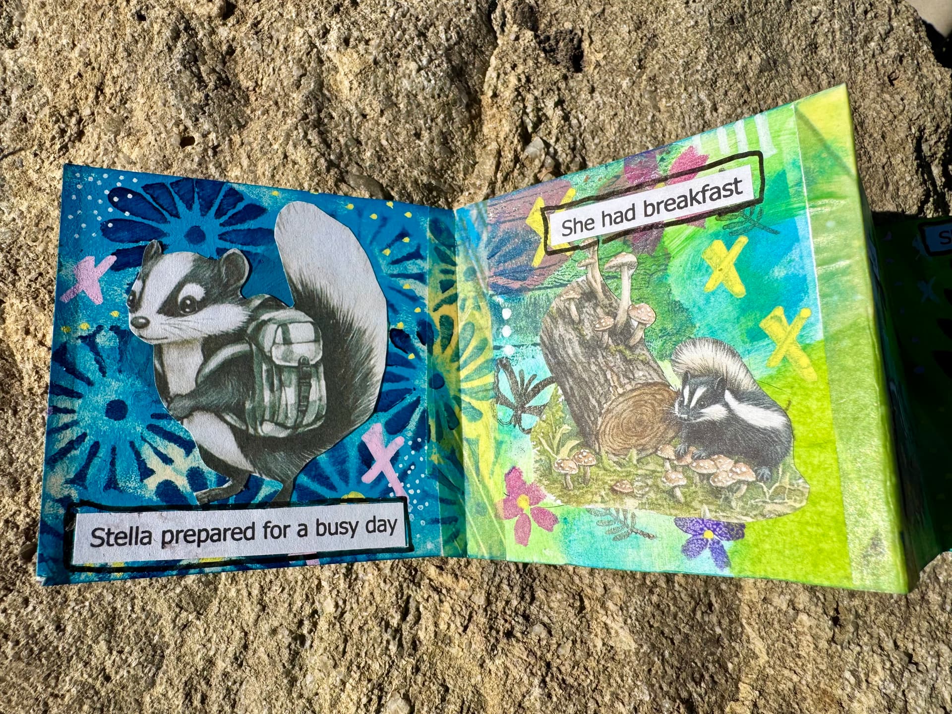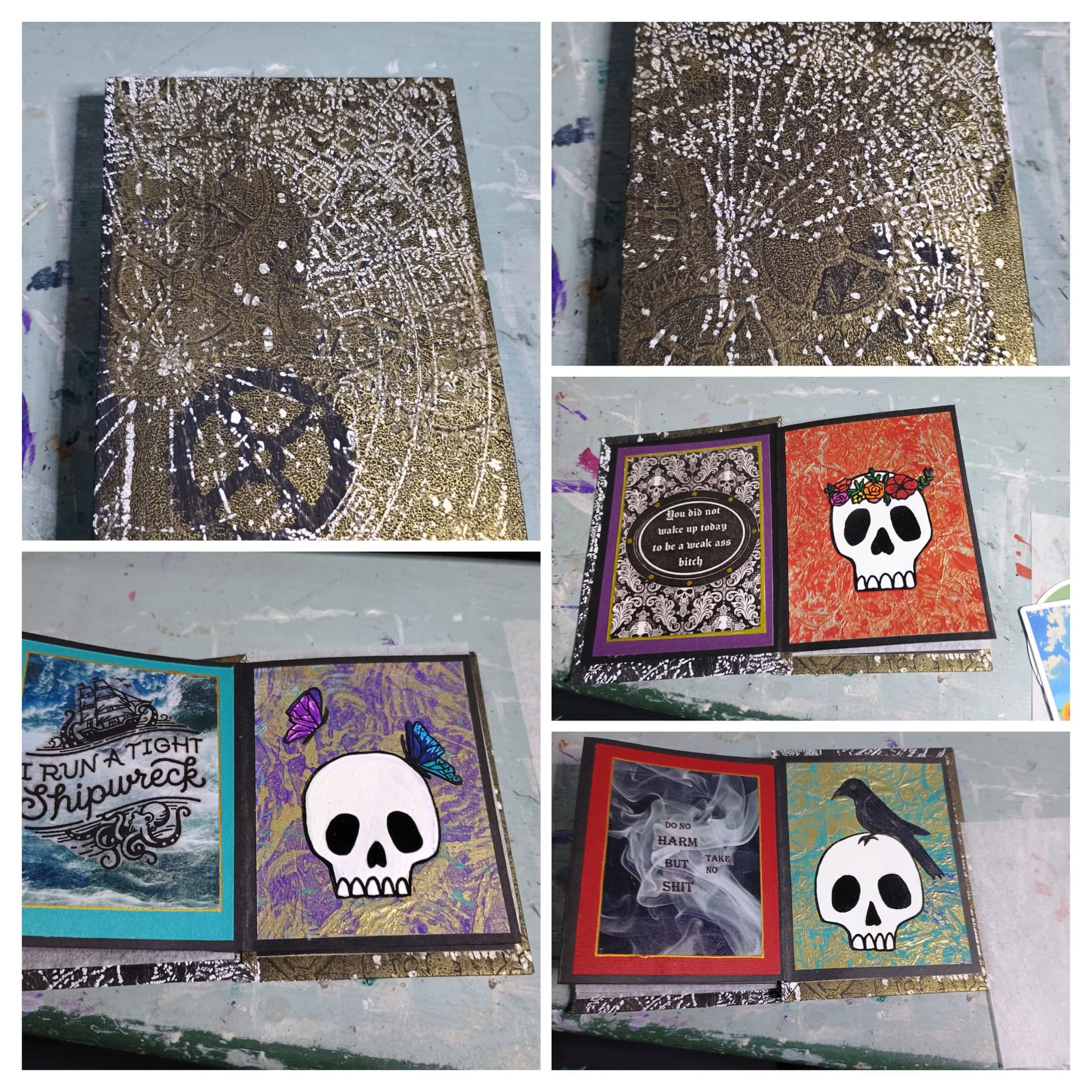 Another cute book that hits the theme(s): Skulls, Positivity / upliftingness, mixed media, grungey fun (I feel this hits that marker in my mind)