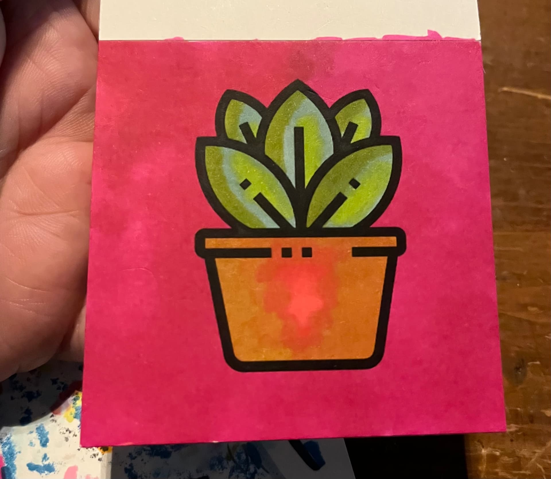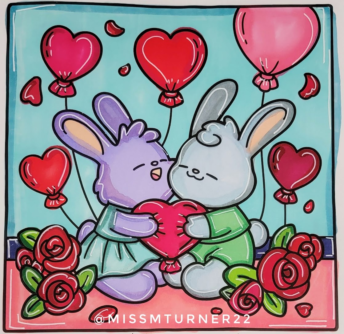 I downloaded some cutesy coloring pages on Etsy. And used alcohol and stabilo markers