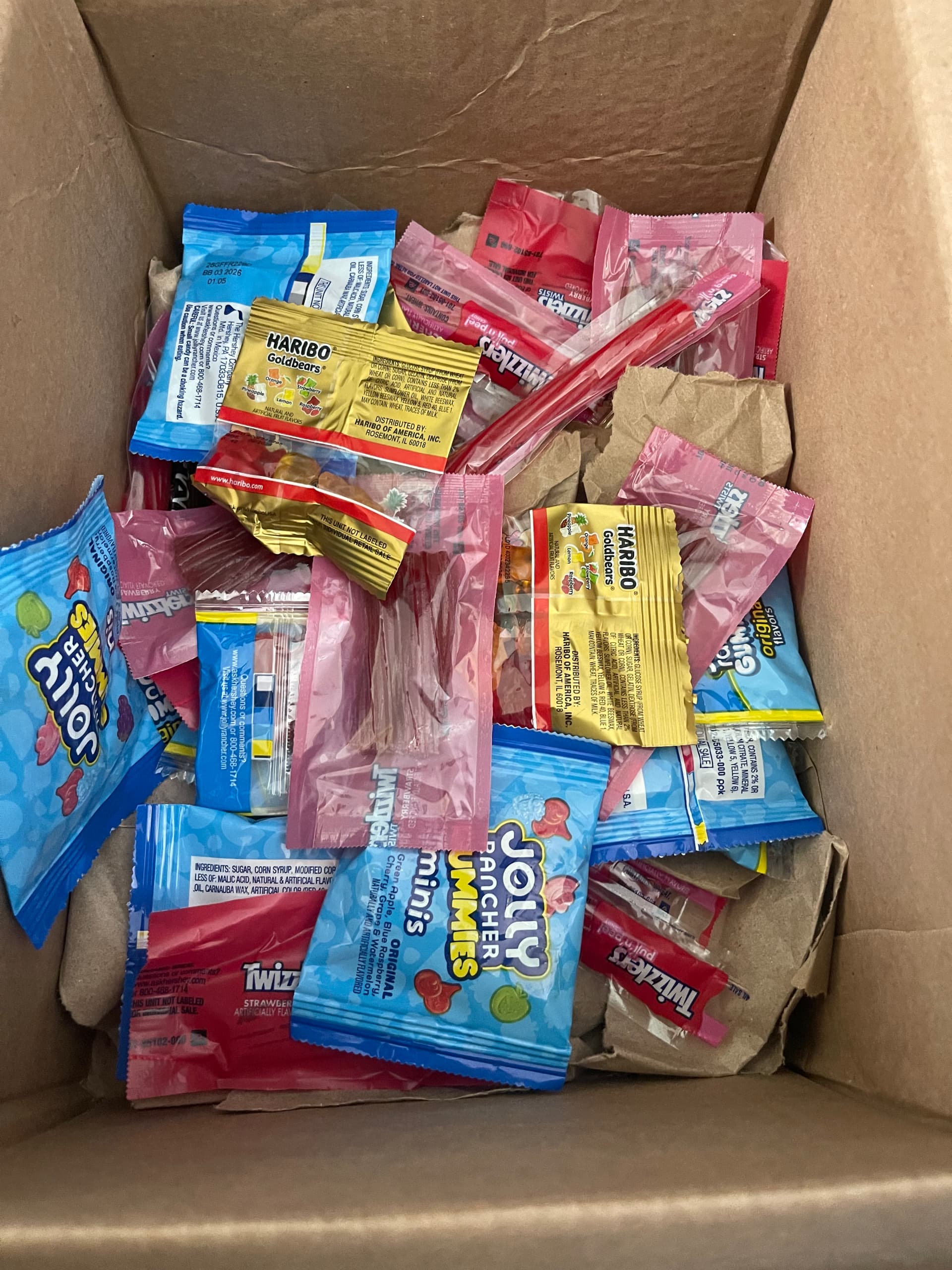 So first, the box was filled with candy. The child has already snatched all the twizzlers.