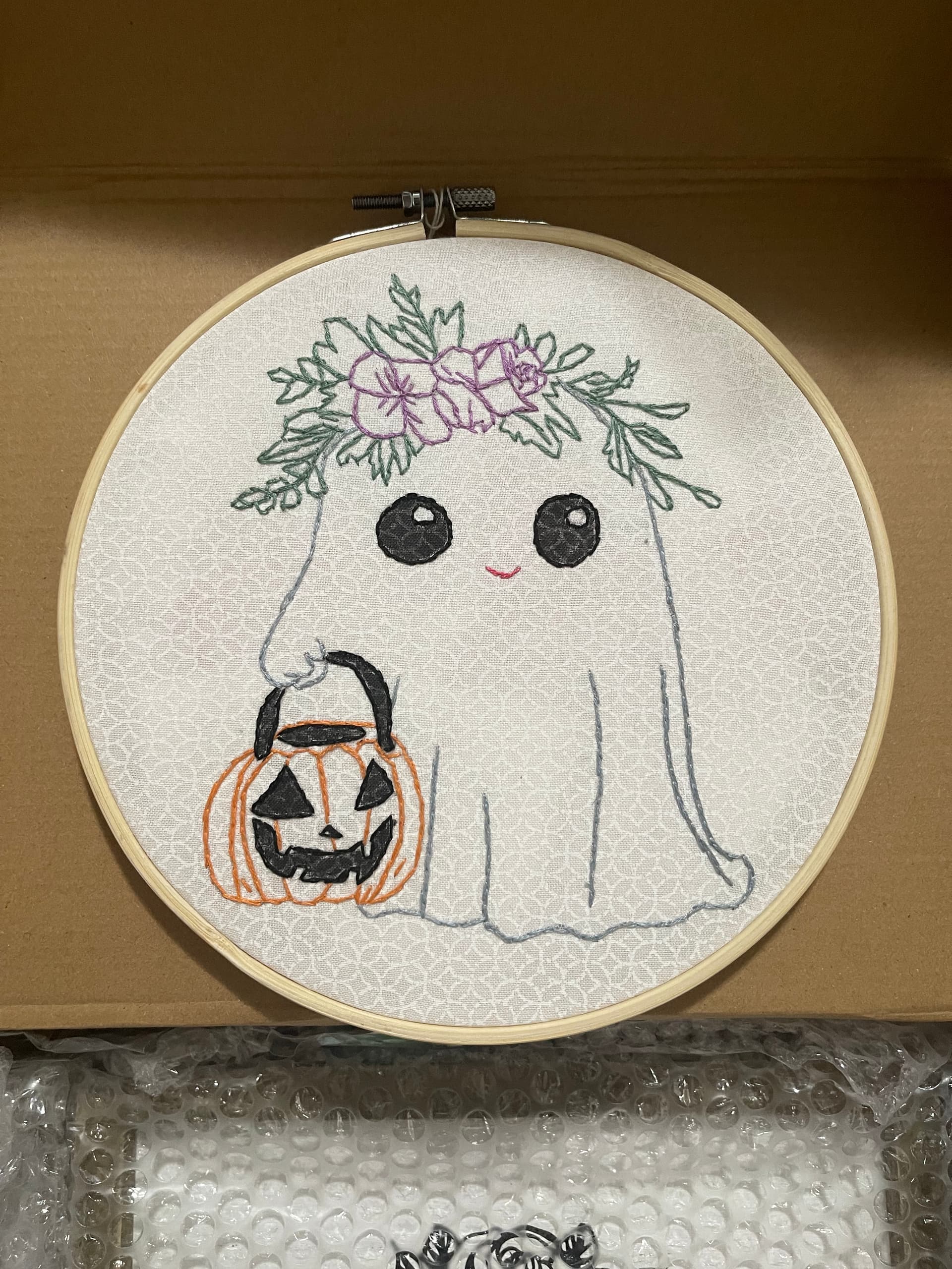 And check out this cute little embroidered ghost!! It’s already up and hanging on my wall
