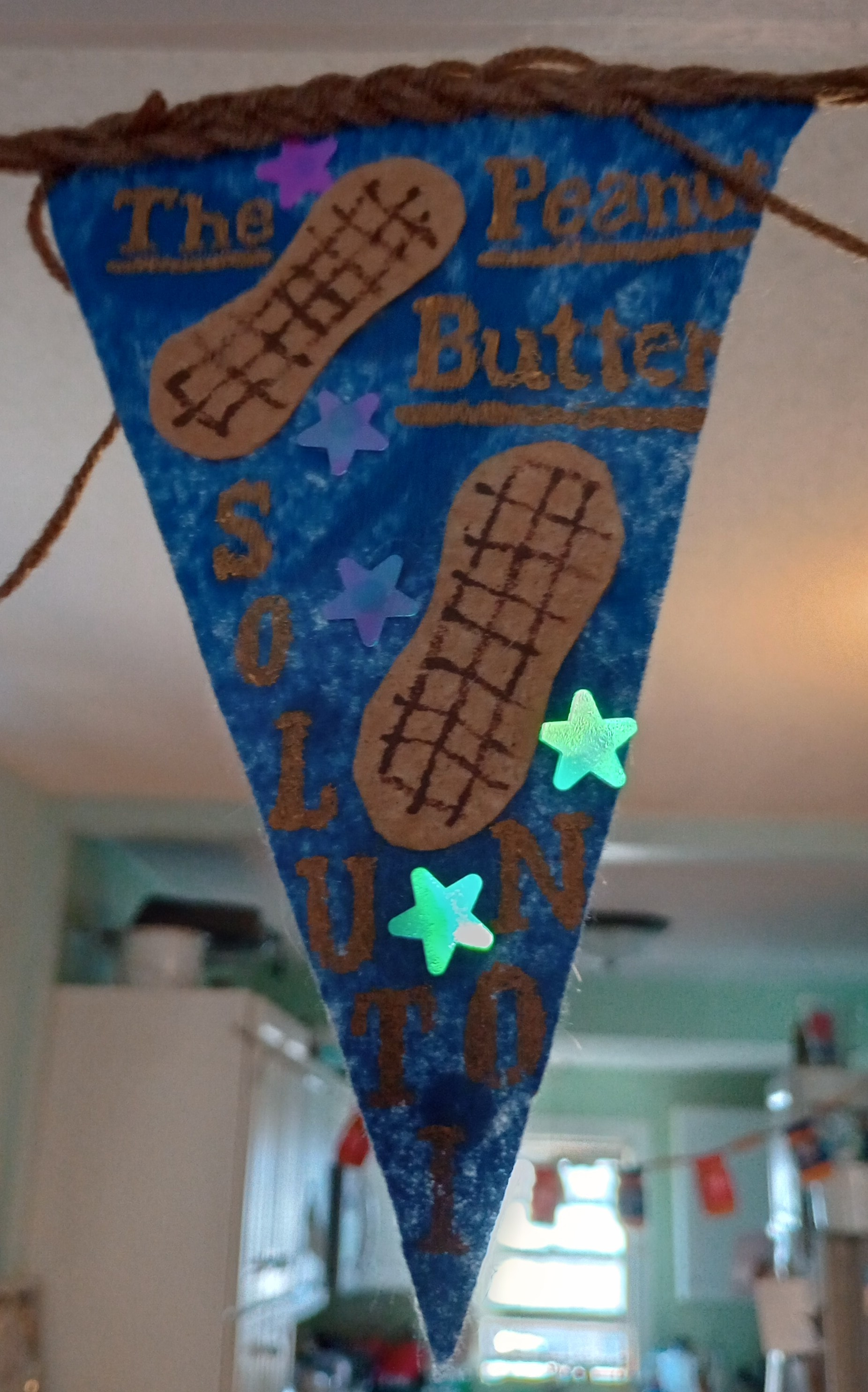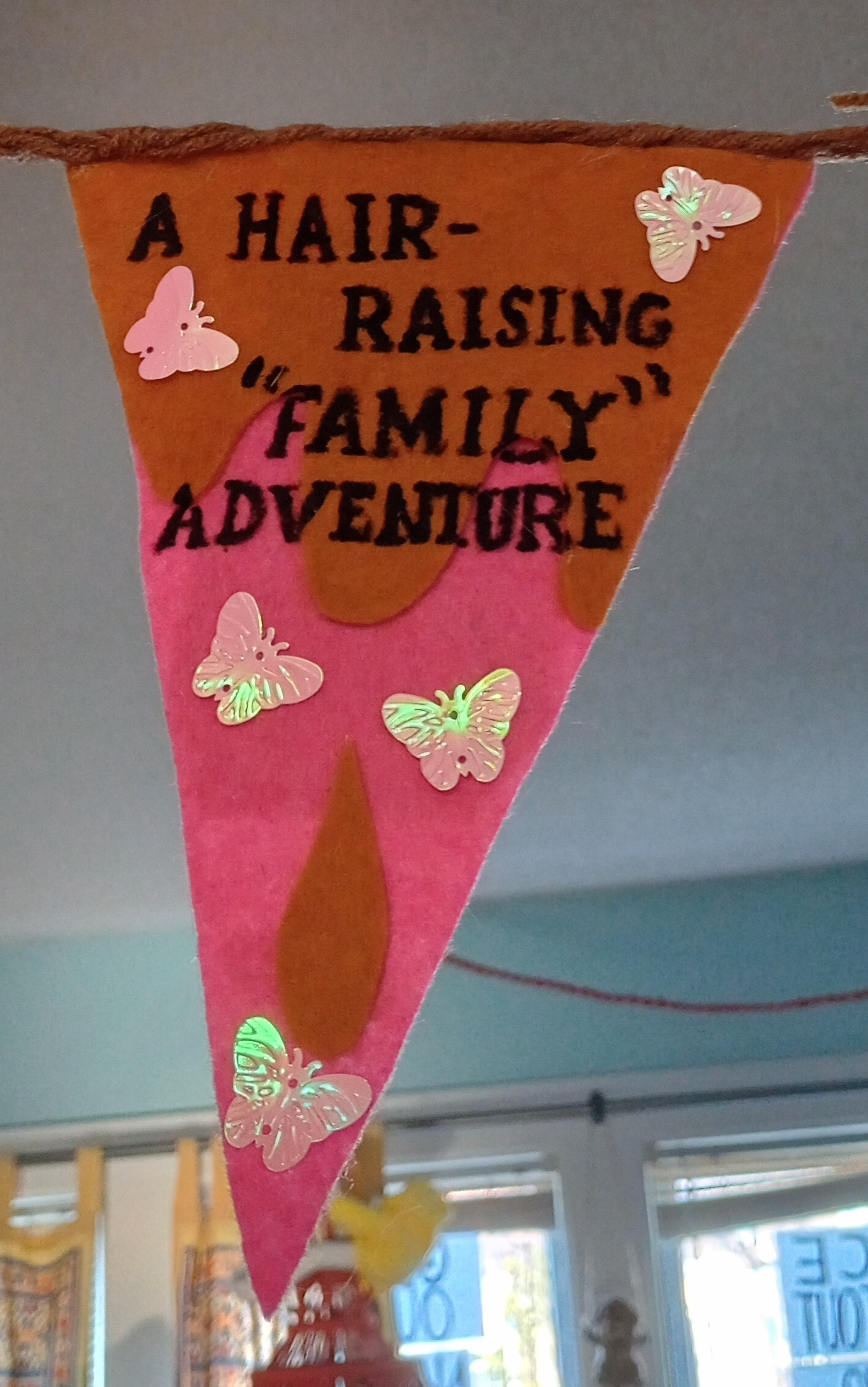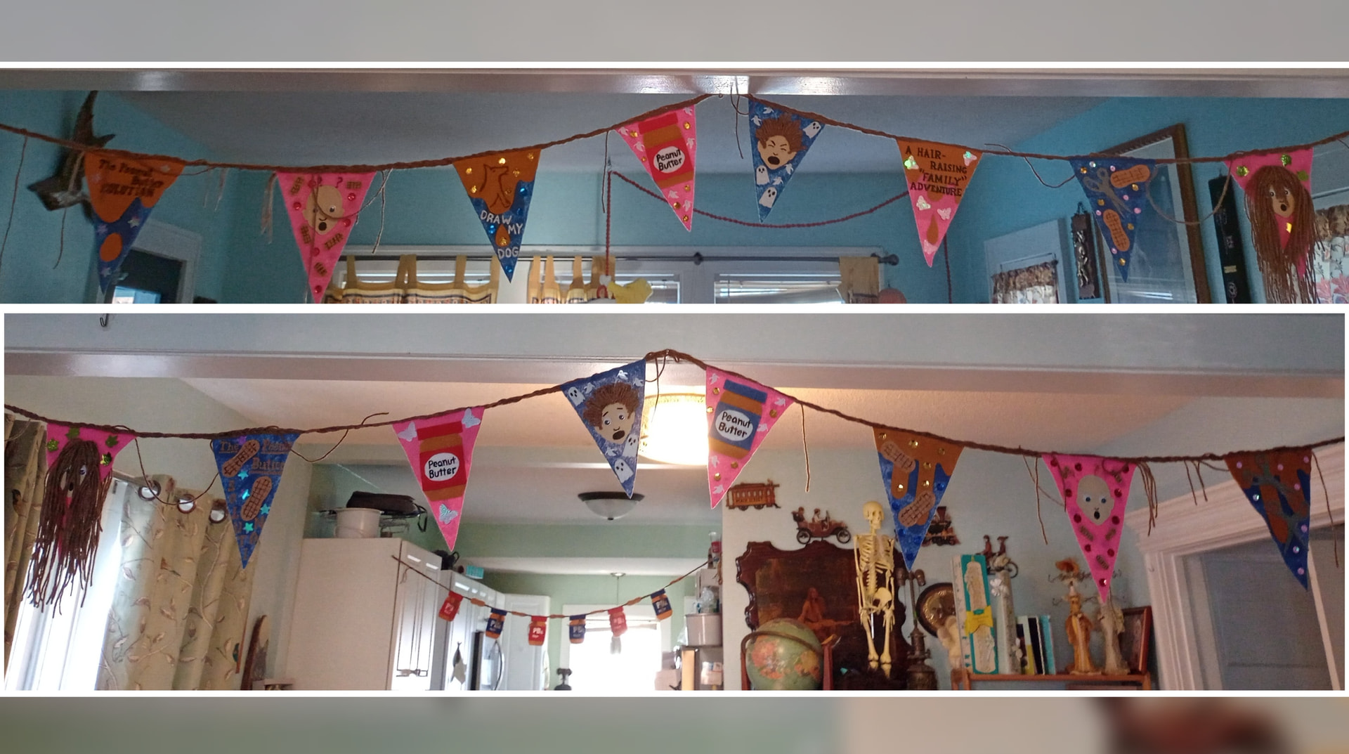 I try to have decorations for my forbidden movie nights but since there aren’t a lot of decorations for a theme of peanut butter and hair I just made my own as I did for Drop Dead Fred.