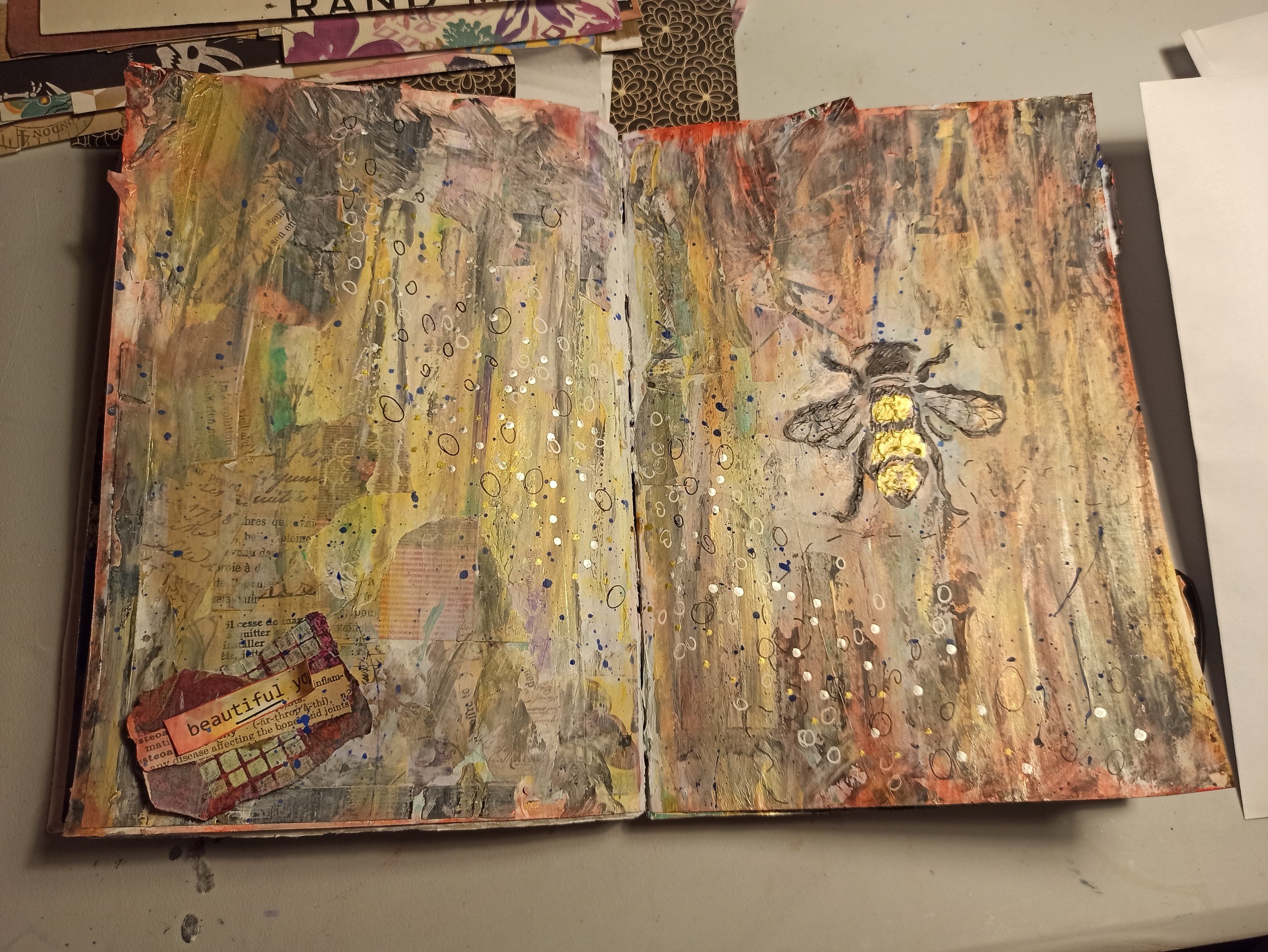 @Edel that watercolour effect is so light and ethereal! There’s such a birdlike quality in this. The gold and the splatters from the bottom work so well too. And then your golden bee page is fantastic! Will look forward to seeing how you finish it off.