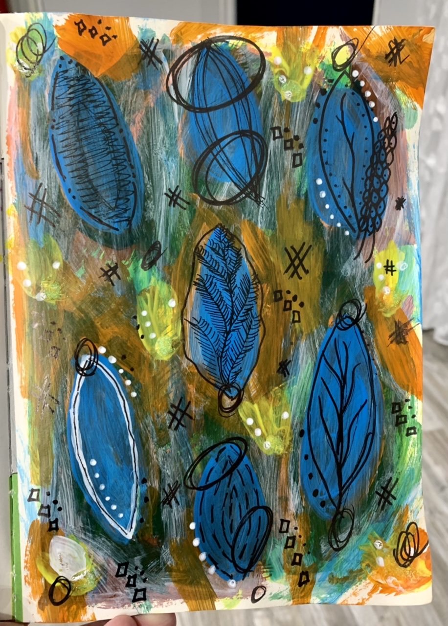 (If you look at her insta and think to yourself that my page looks nothing like hers, I couldn’t agree more. I did the page as part of a class and I probably would have chosen a different starting image to use for inspiration. My page ended up going completely off the rails)