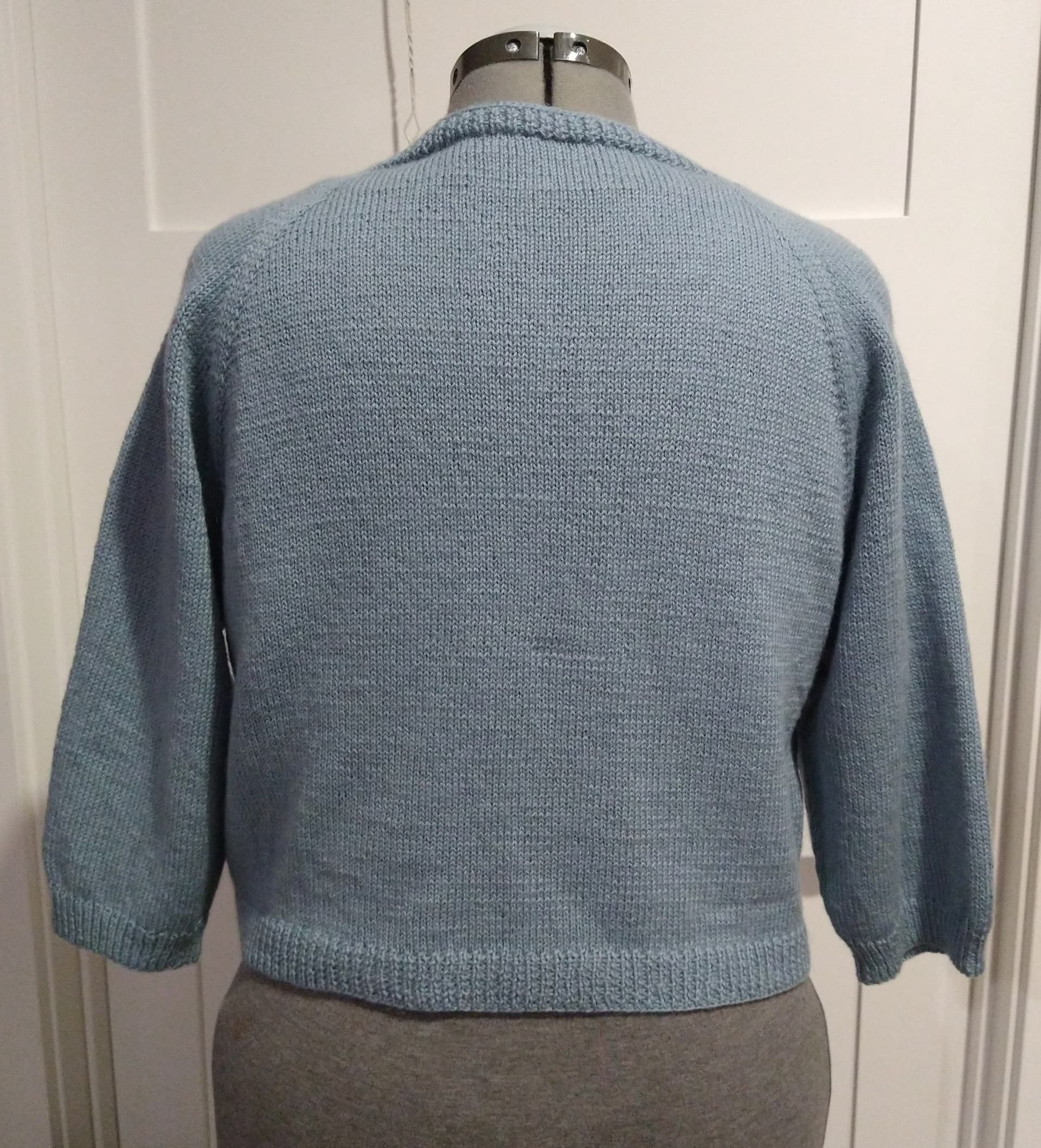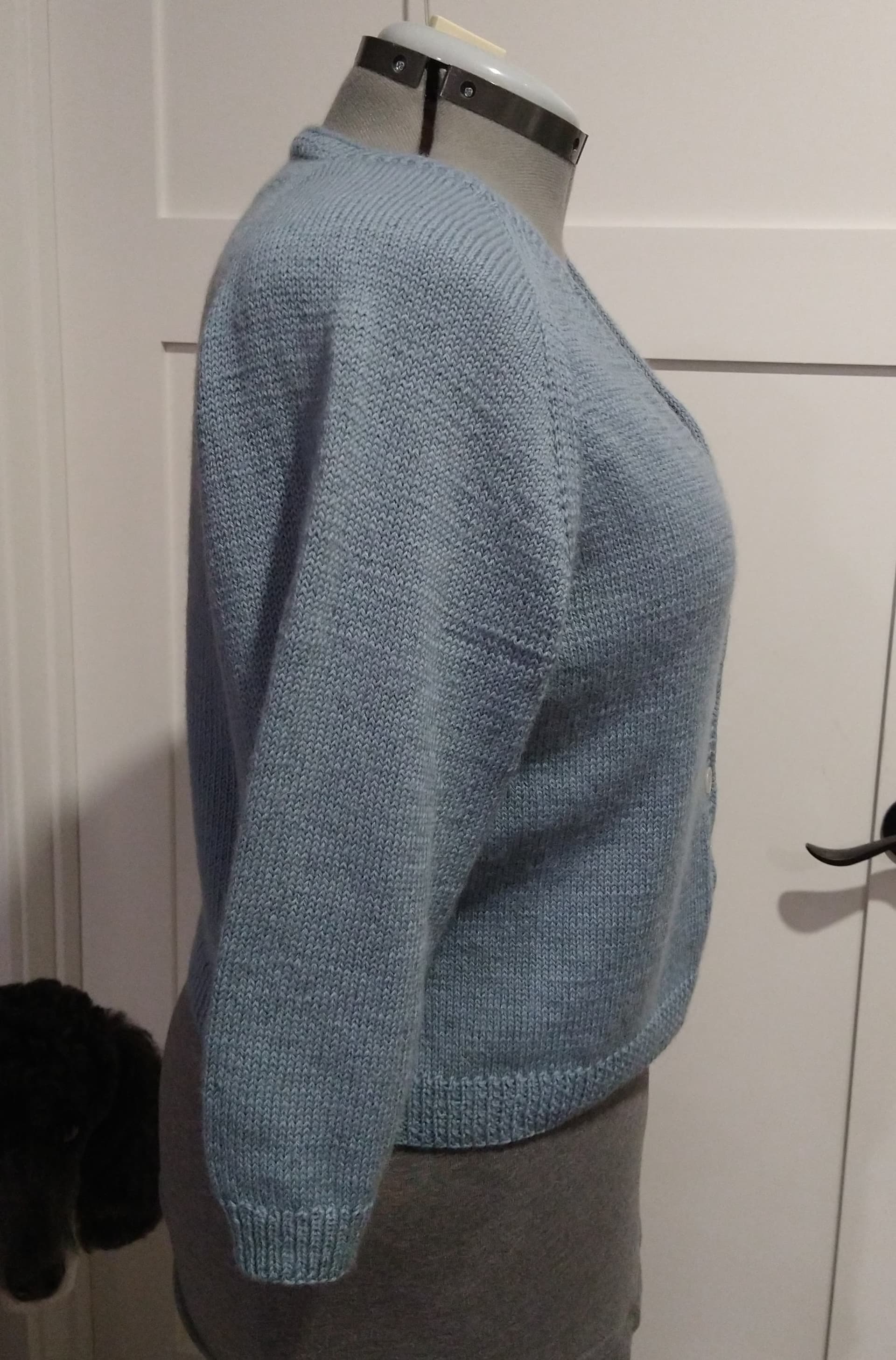 The pattern is the Basic V-Neck Pullover by Cleome Smith, and one I’ve made before. But, I wanted a lightweight, cropped-ish cardigan with not-long sleeves. The only modification was not joining in the center and adding a button band. I had no idea how far the yarn would go, so I knit everything but the sleeves, then divided my remaining yarn in half and knit the sleeves until I ran out. By some small miracle, the sleeves came out the perfect length to be comfortable (3/4).