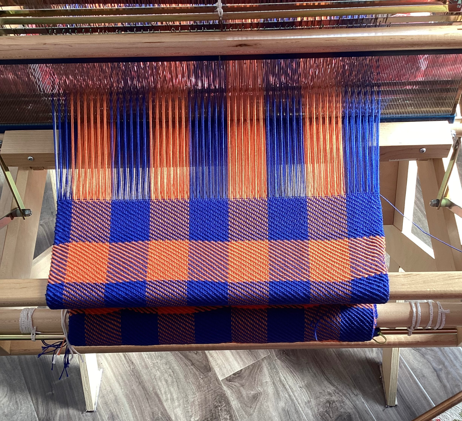 On the loom, you’re seeing half the width here, when it comes off, I unfold it to full size.