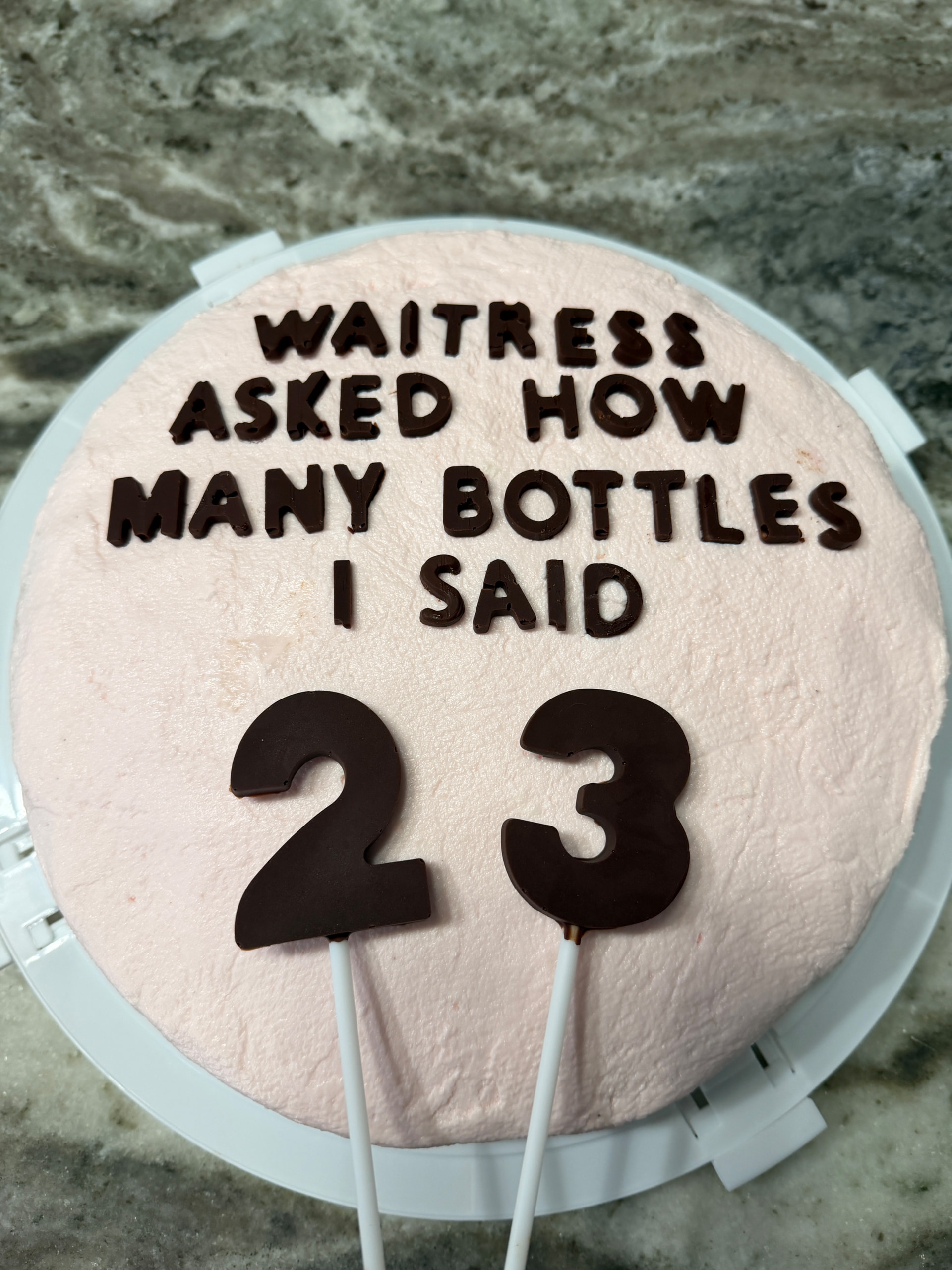 Birthday cake with a song quote from the song “23” I told her she should use Blink 182’s “nobody likes you when you’re 23”