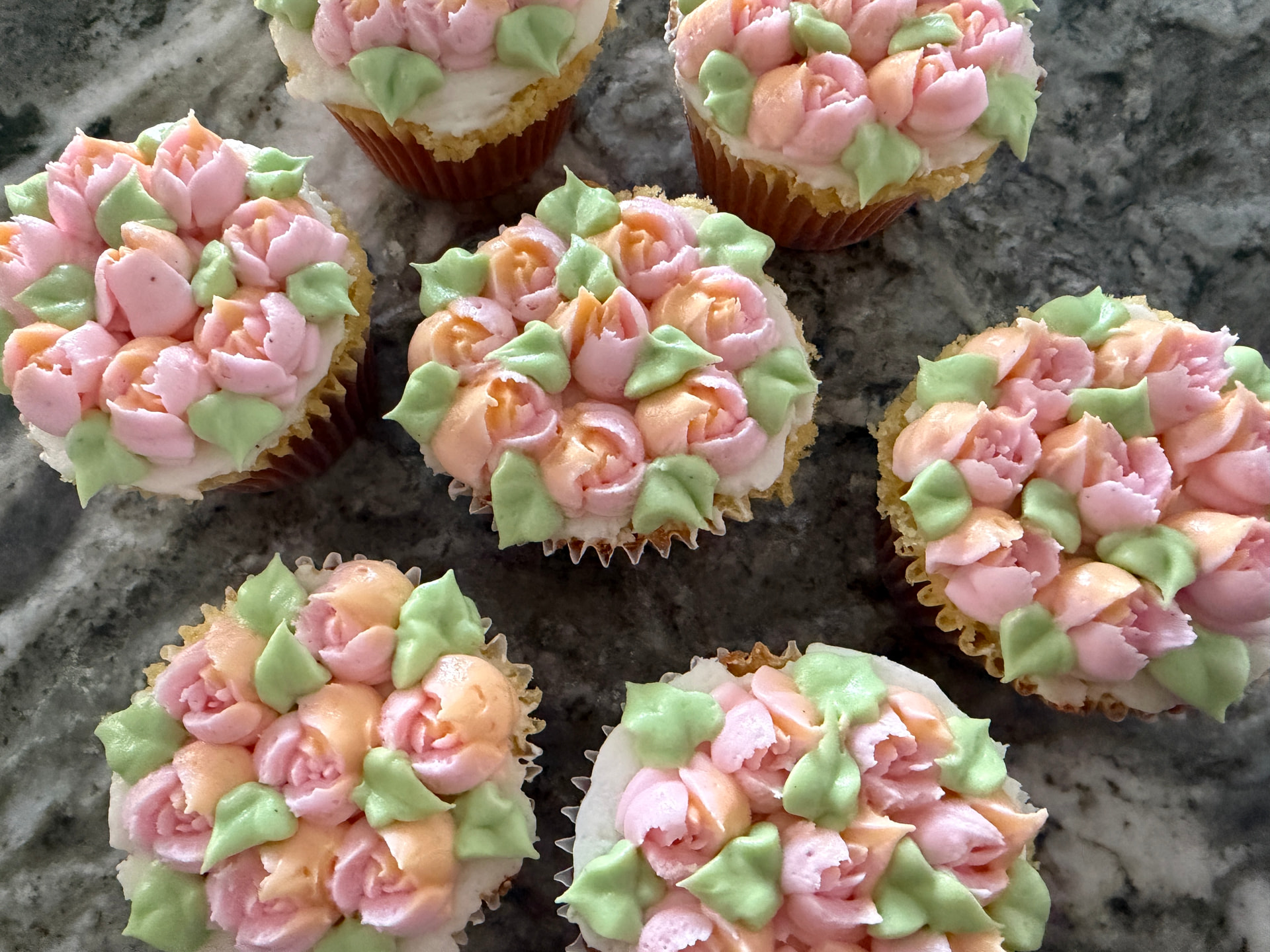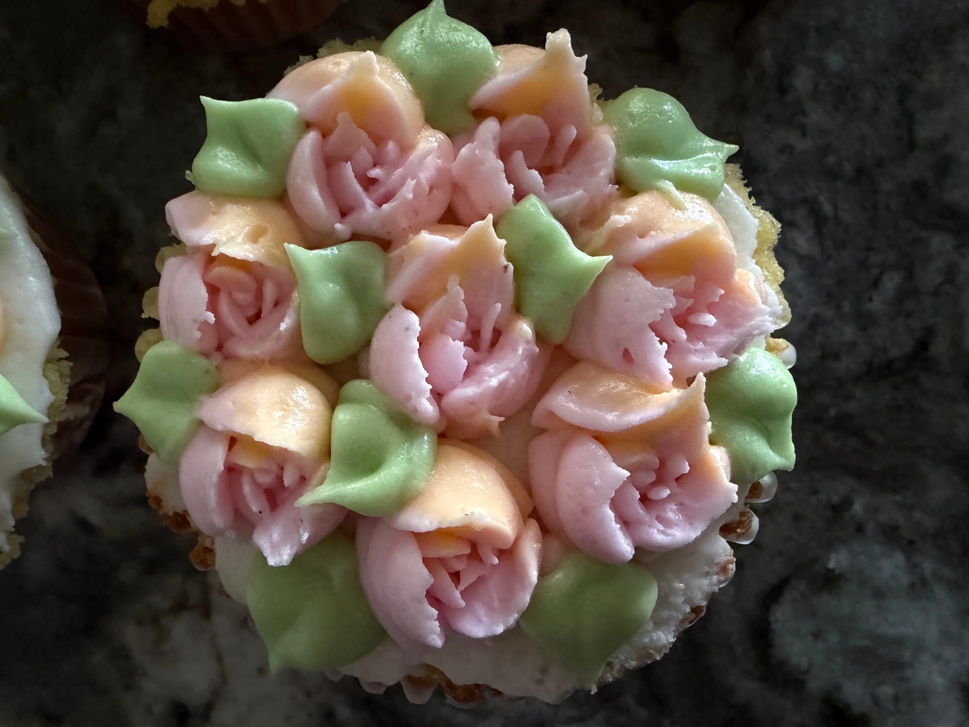 Her cake looks so precise and professional! Hiliarious, too. The cupcakes are gorgeous. If I didn’t know that they were also delicious, I’d say they were too pretty to eat.