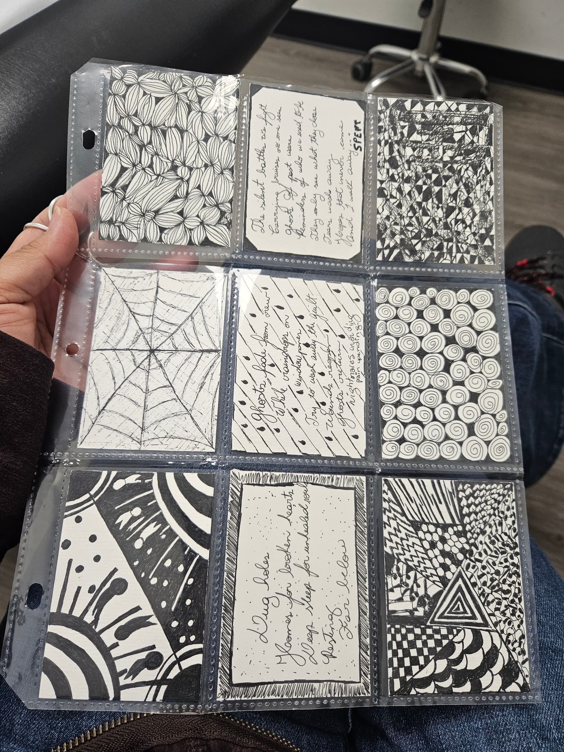 What an alternative way to express your art and emotions! I love black and white doodles. They are calming and put all together, they make a nice collection!