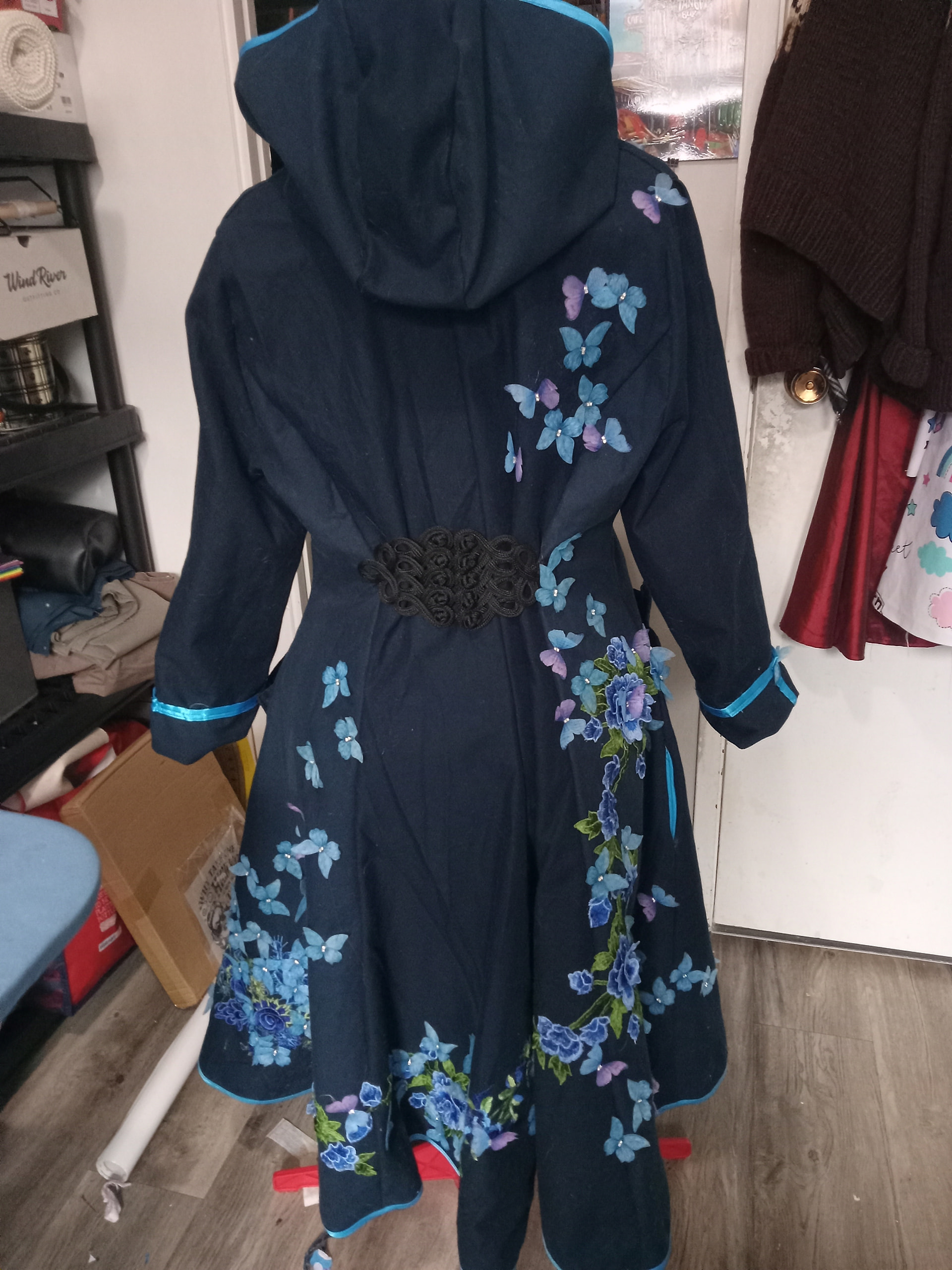 I need more info. This coat is amazing! Did you applique the butterflies and flowers on? I zoomed and it looks like some of the butterflies are dimensional, which is super cool. The entire coat is stunning!