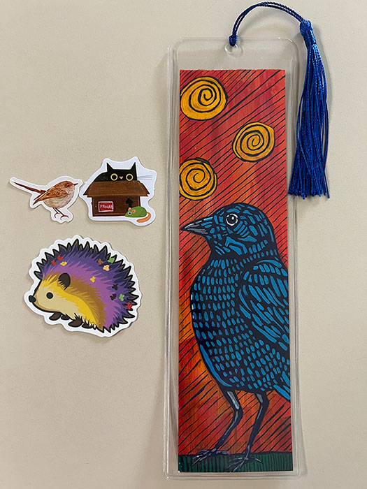 I received my beautiful bookmark & some adorable stickers from @Tapestry! She used my corvid theme and was also inspired from some woodblock prints I have pinned on my pinterest! I love all the vivid colors and the bird is so pretty! I love it, thank you so much! ![]()