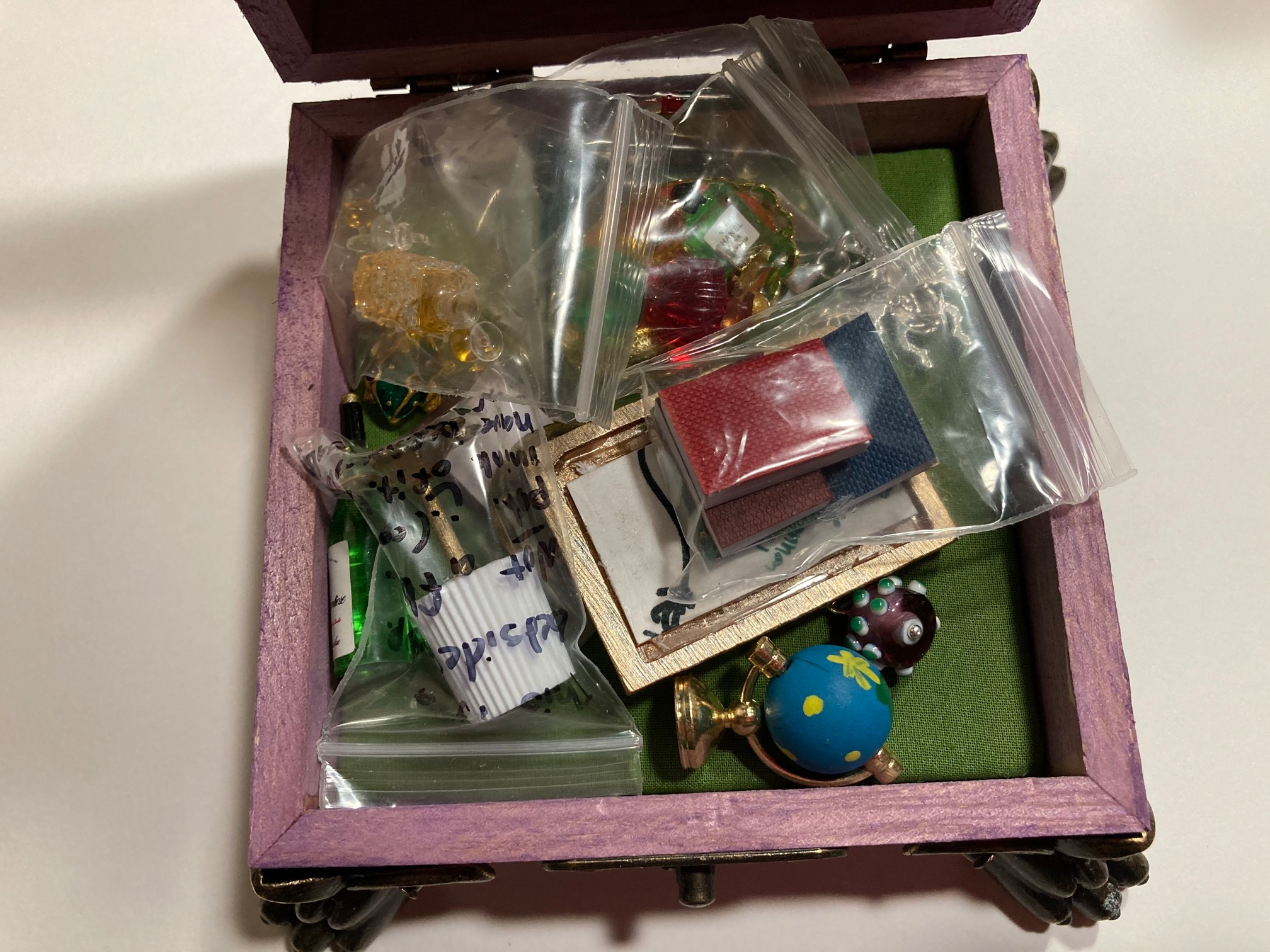 @Fonduie I adore that box, the wood burned bee is perfect, and your miniatures are really clever. Especially the lamp.