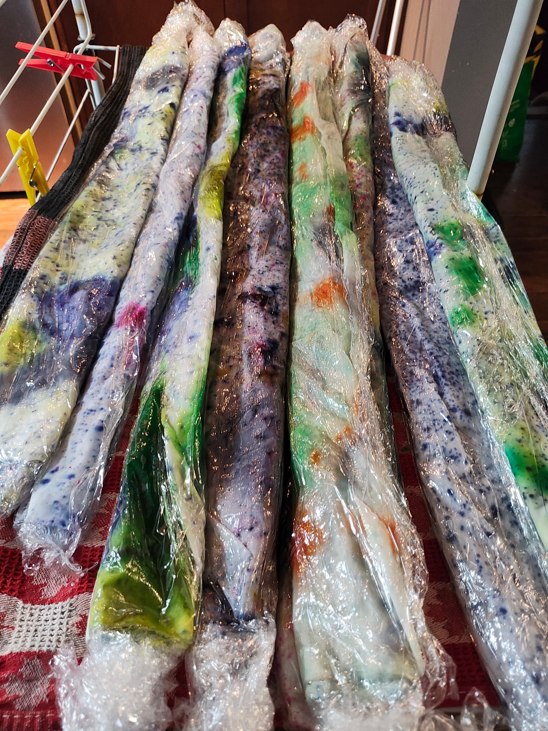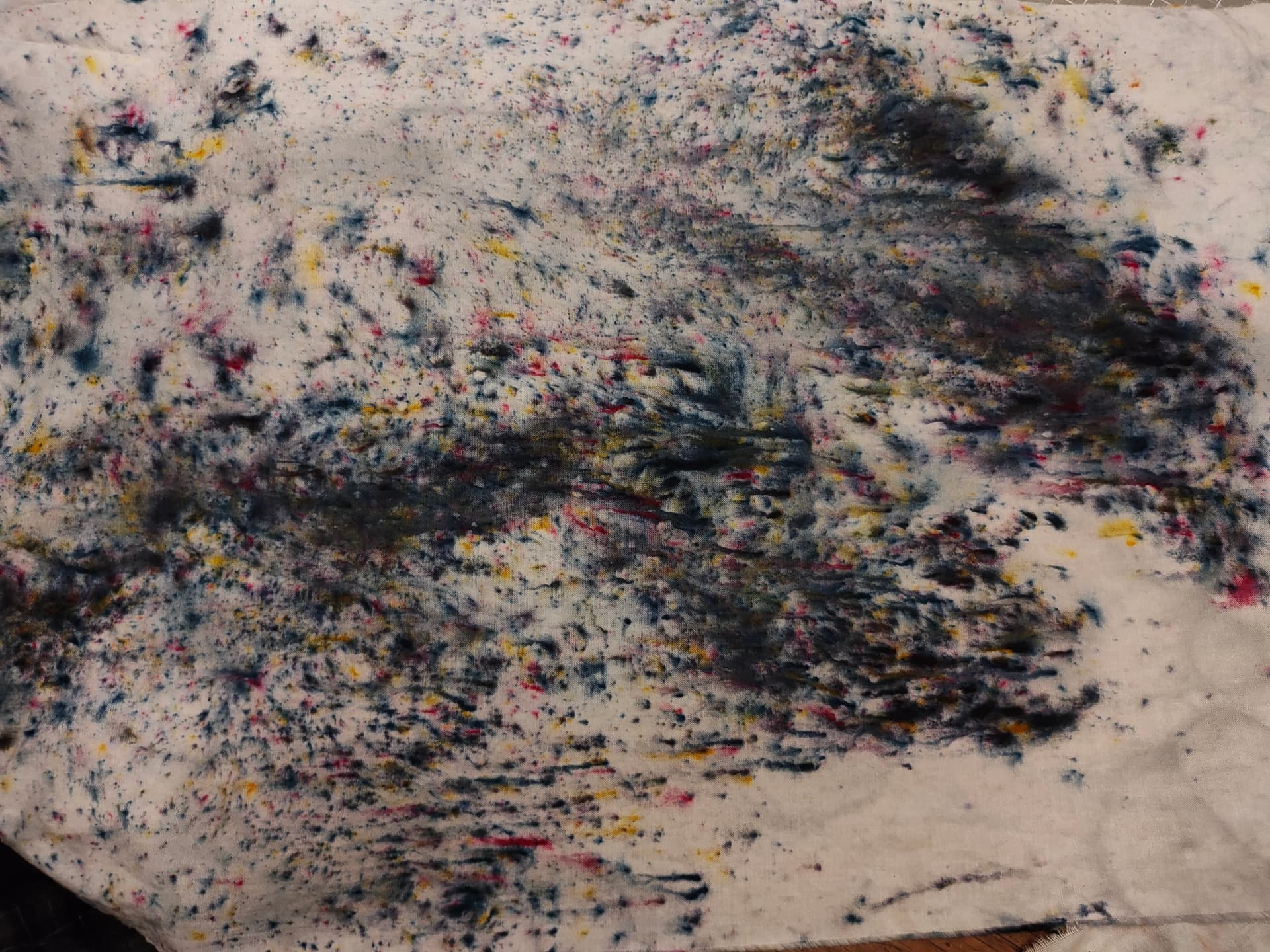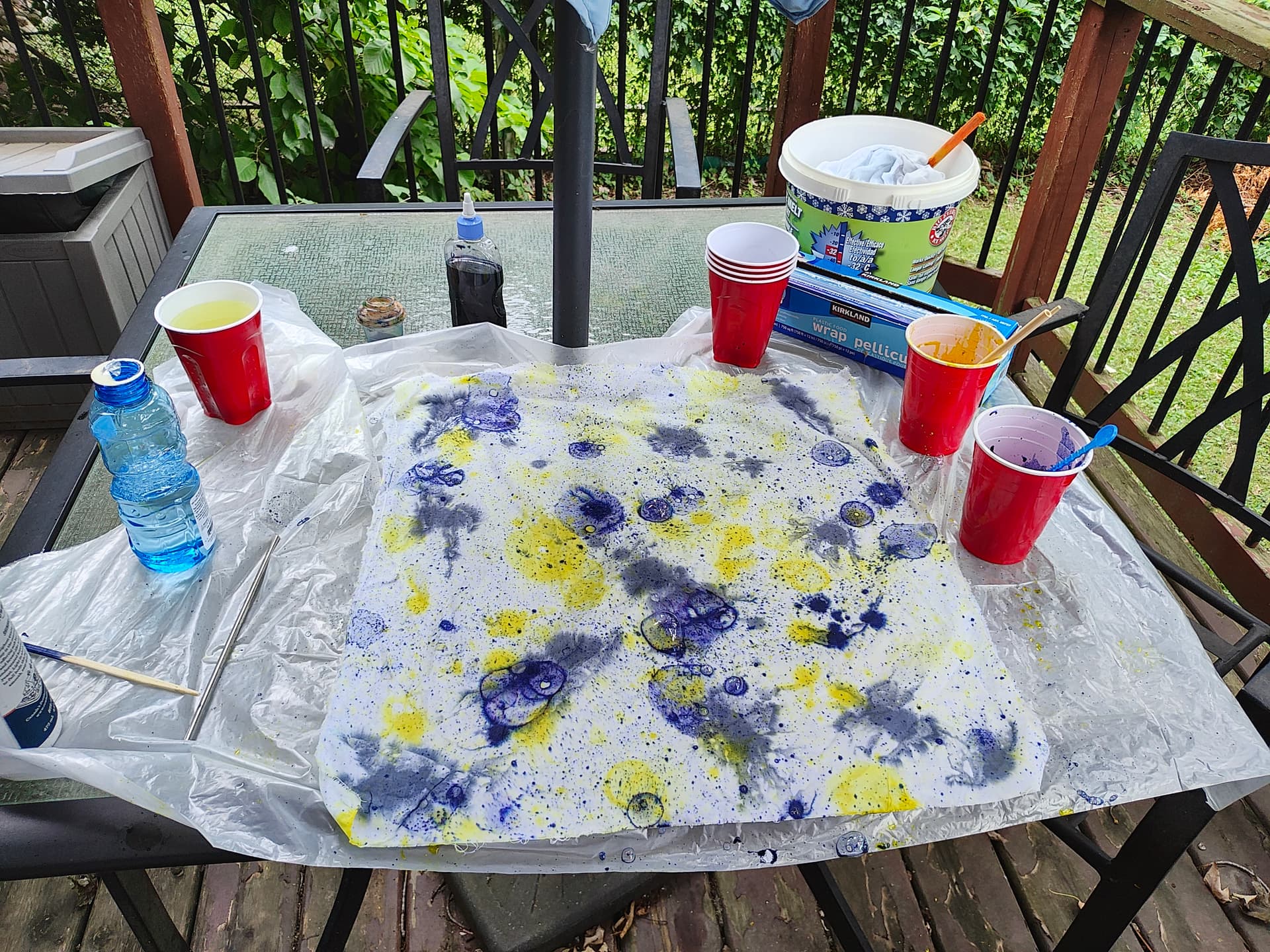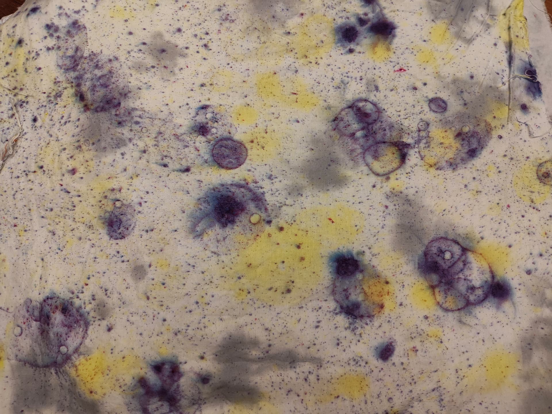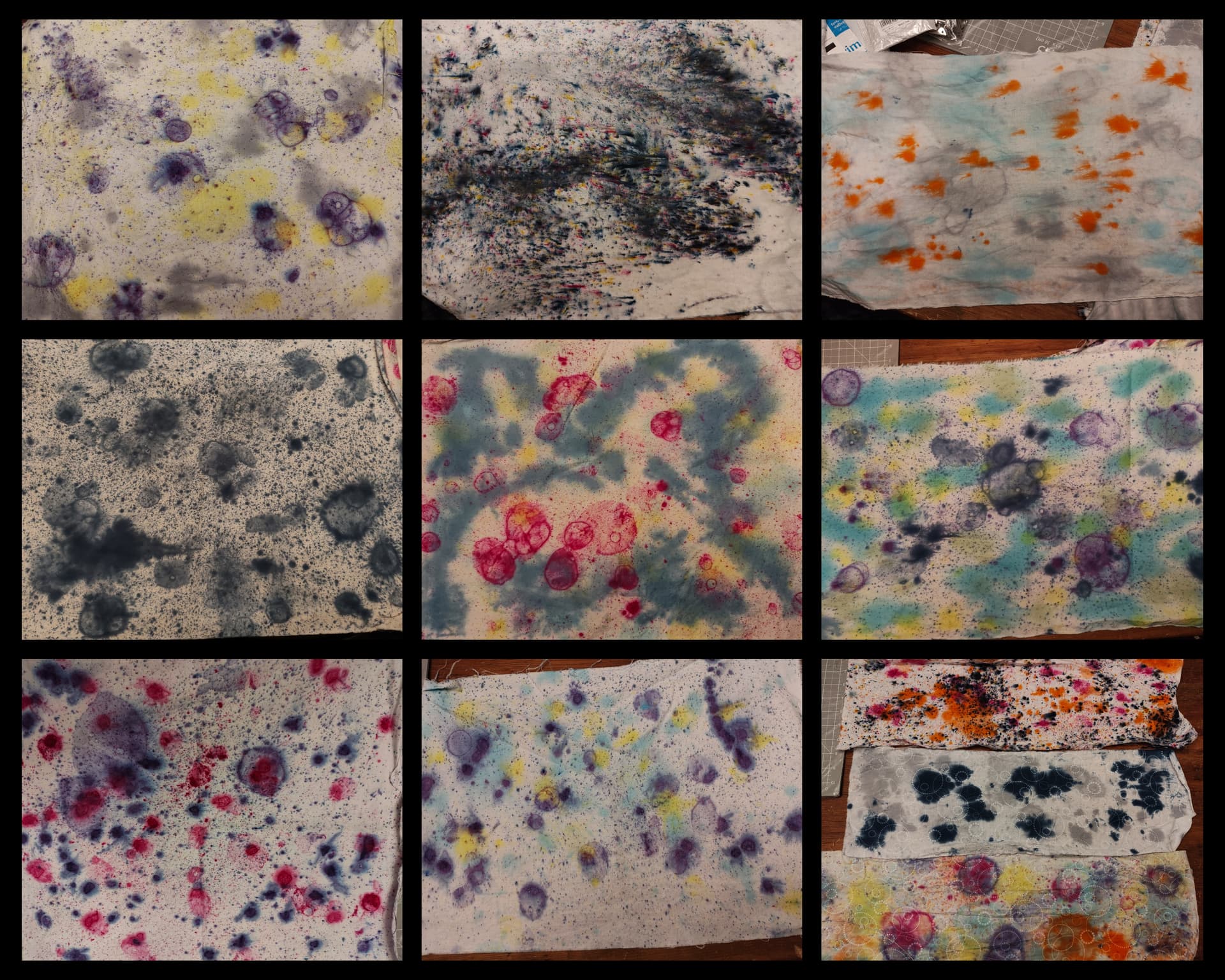 I used some procion dyes (even some I had mixed up, like 18 months or more ago) added a couple of “glugs” of dollar store bubble solution and just… Played .