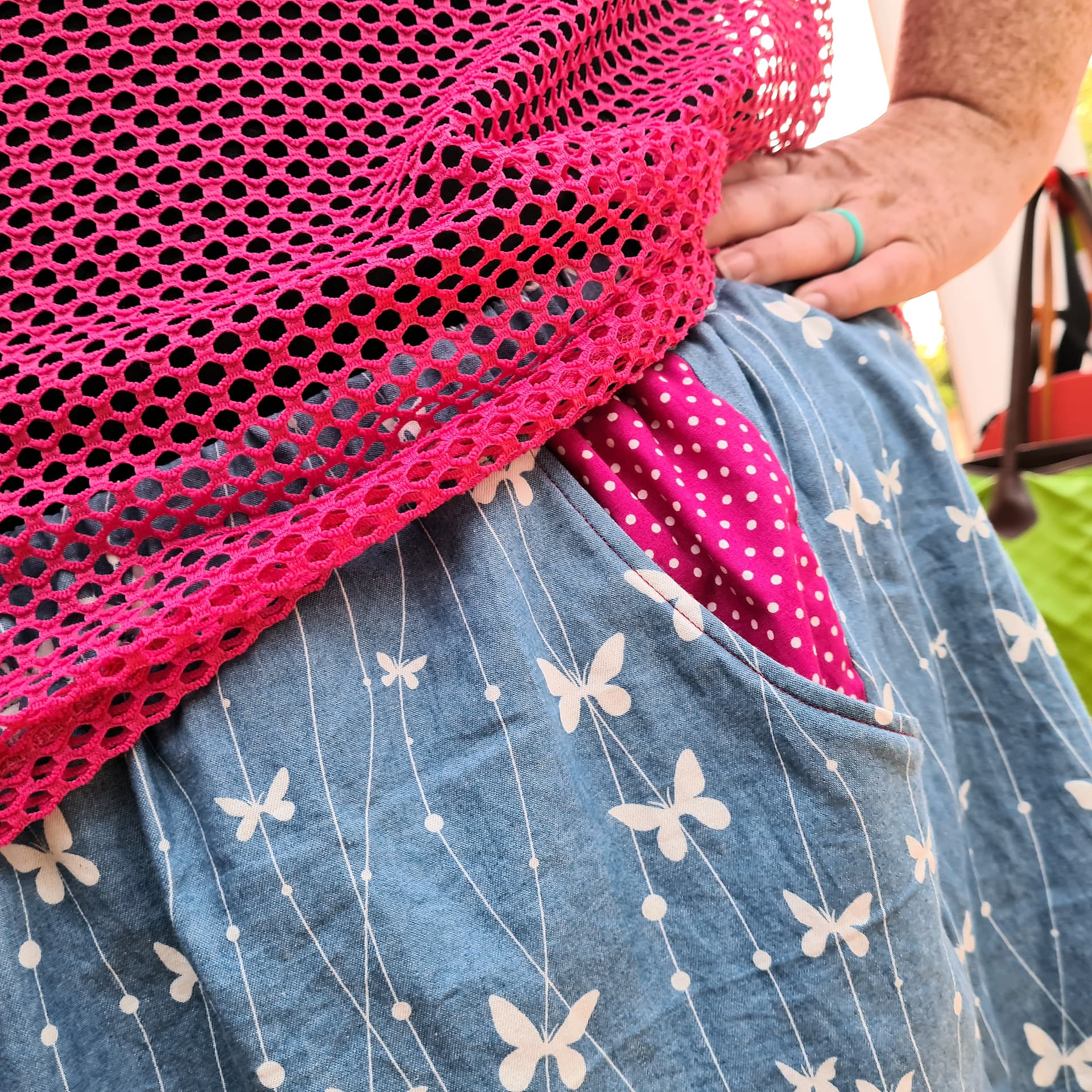 I did ponder also putting a matching band on the bottom, but in the end decided I didn’t want to take away from the pretty butterfly chambray so instead I hemmed them with a decorative stitch in a matching colour. I’ve not actually done this before, but I love how subtle it is.