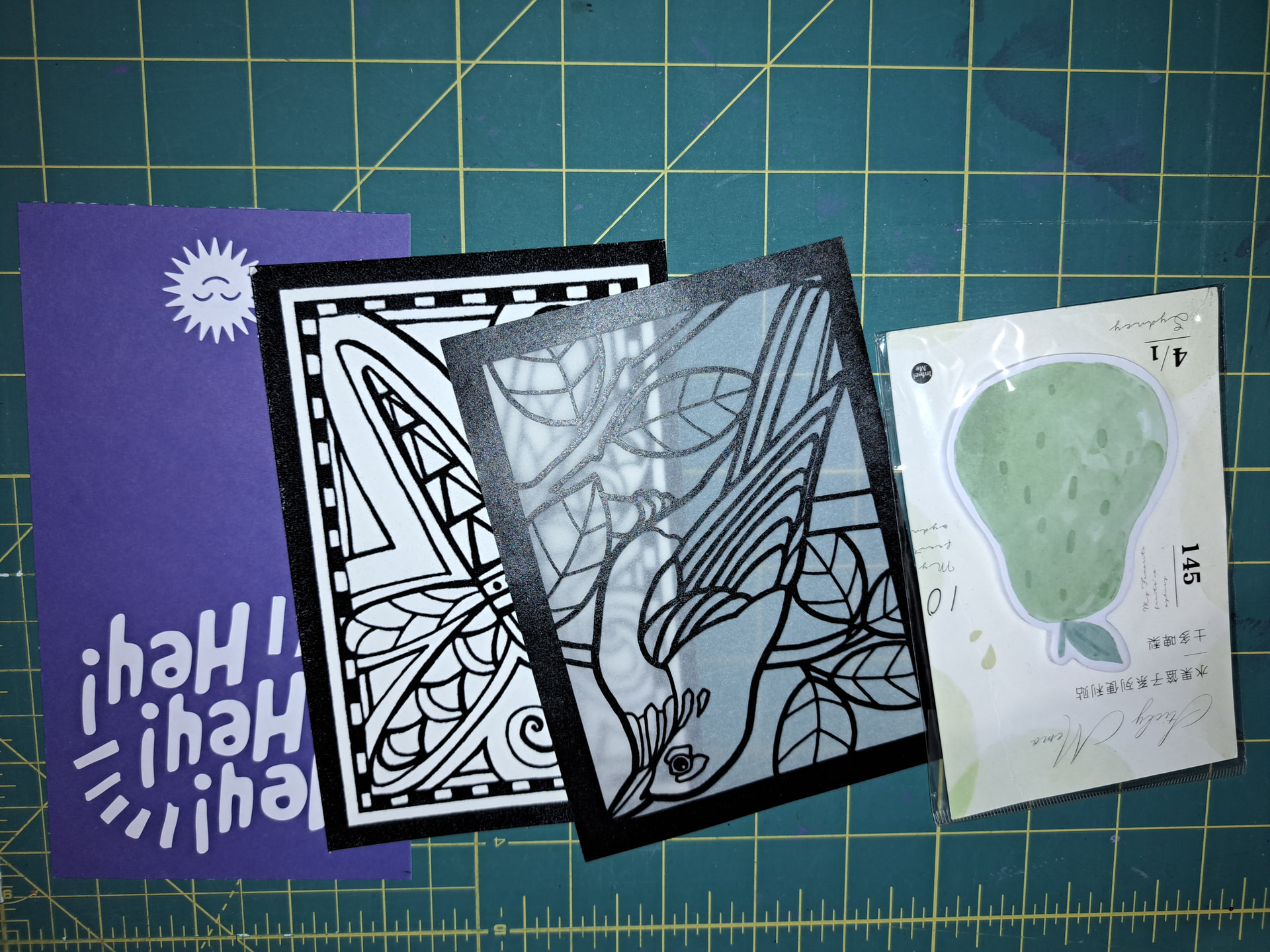 The card @LovelyMiss sent is actually an card and envelope in one! And completely decorated by hand. Inside were also some generous extra’s - sticky notes and cards.