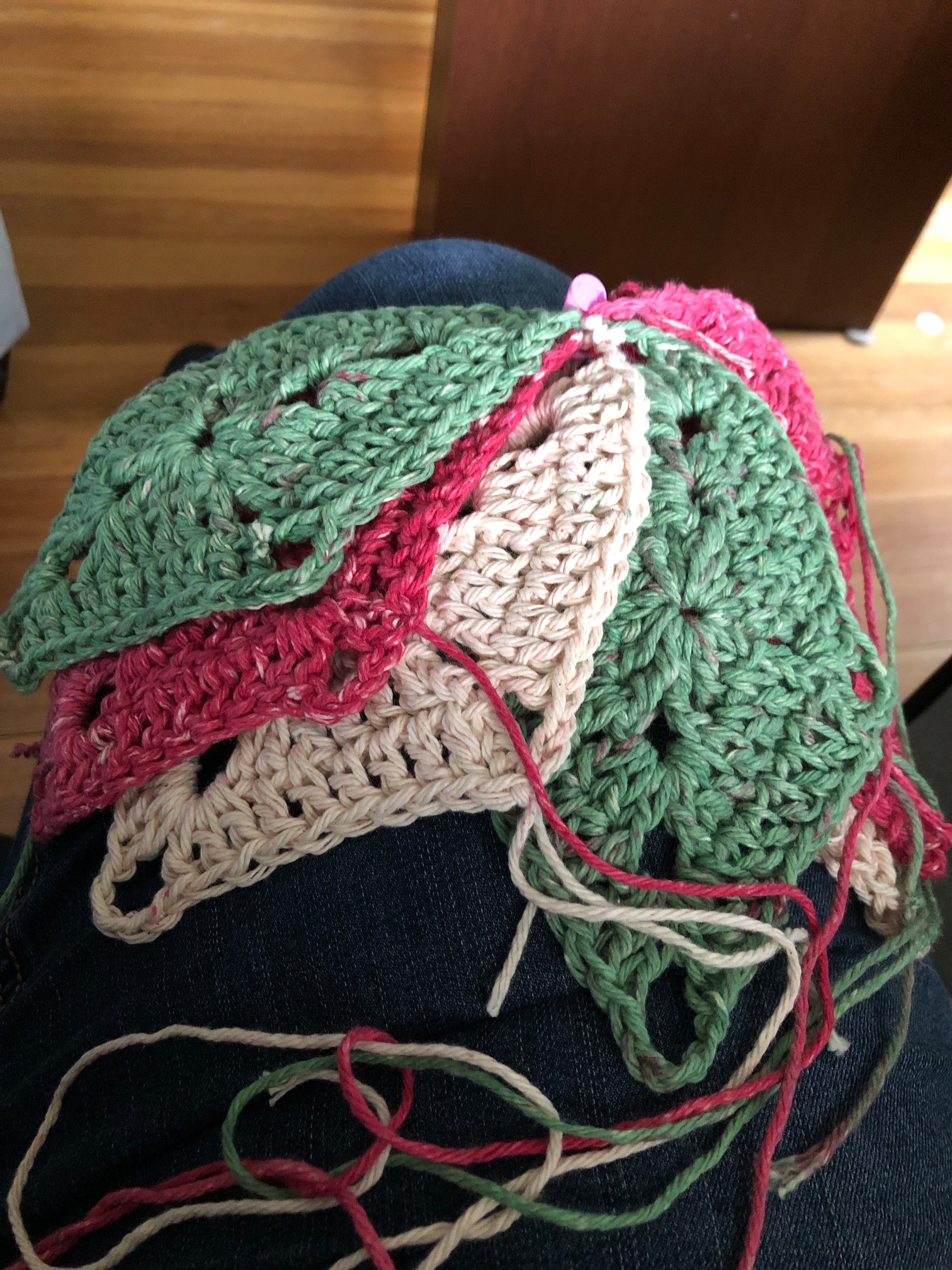 I"ve nearly finished my first fake-swap item. Just have to sew it up then block it. 11 more to go!