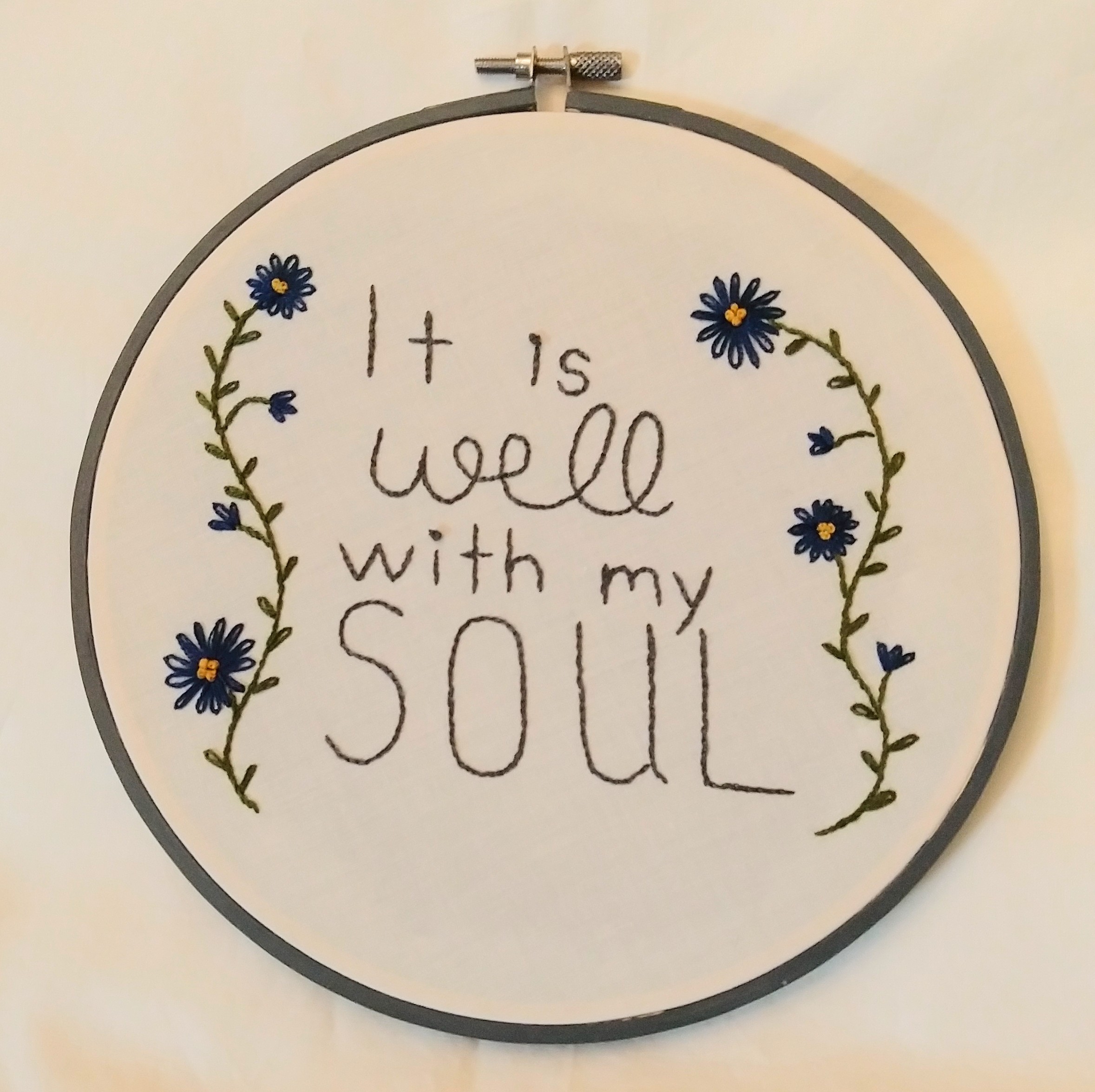 I’m still around… Just busy with work. I made this hoop for my Secret Santa at work. She likes Christian inspirational quotes so I went with my grandfather’s favorite hymn.