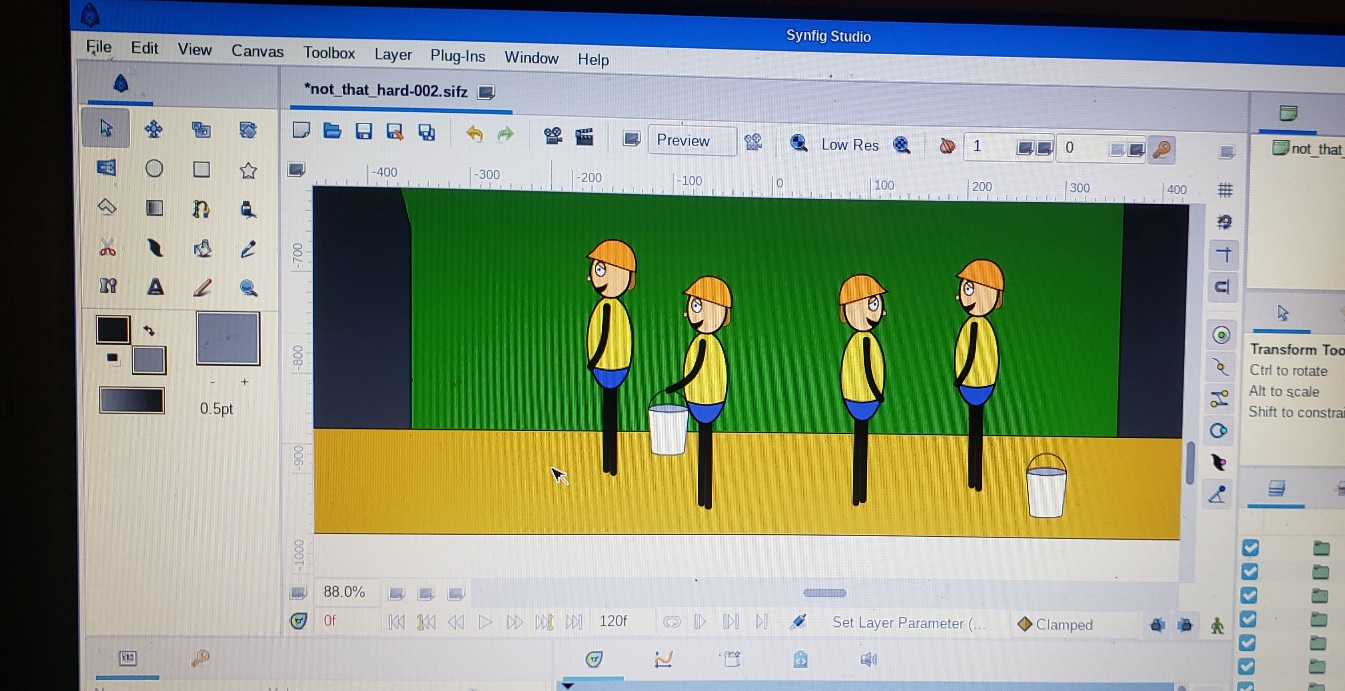 As for this animation, I’m redoing all the images from scratch, and using Synfig only for making all the parts. The hope is that Synfig won’t crash as much, which it still does,