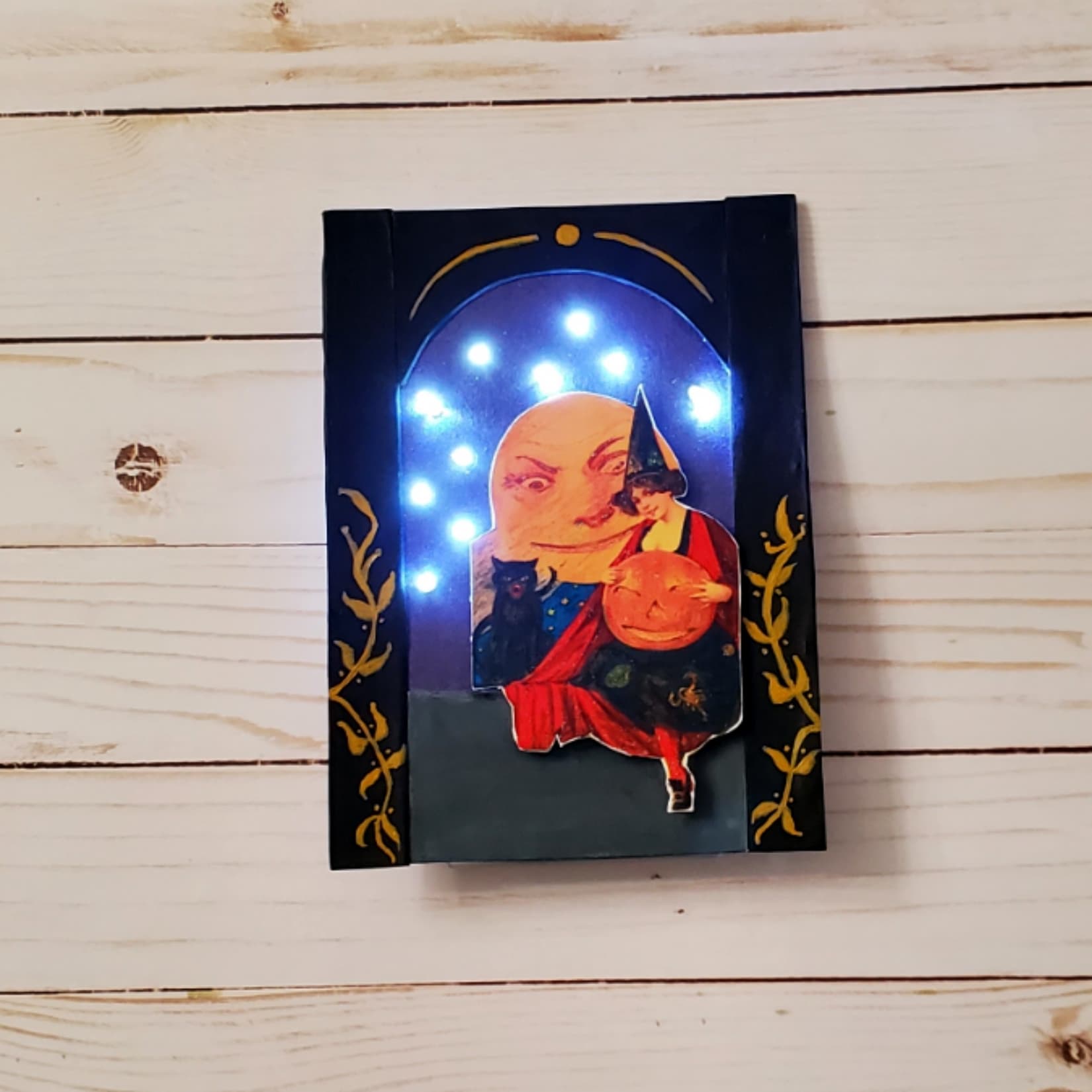 How clever to add lights! The expression on the moon and cat are wicked!