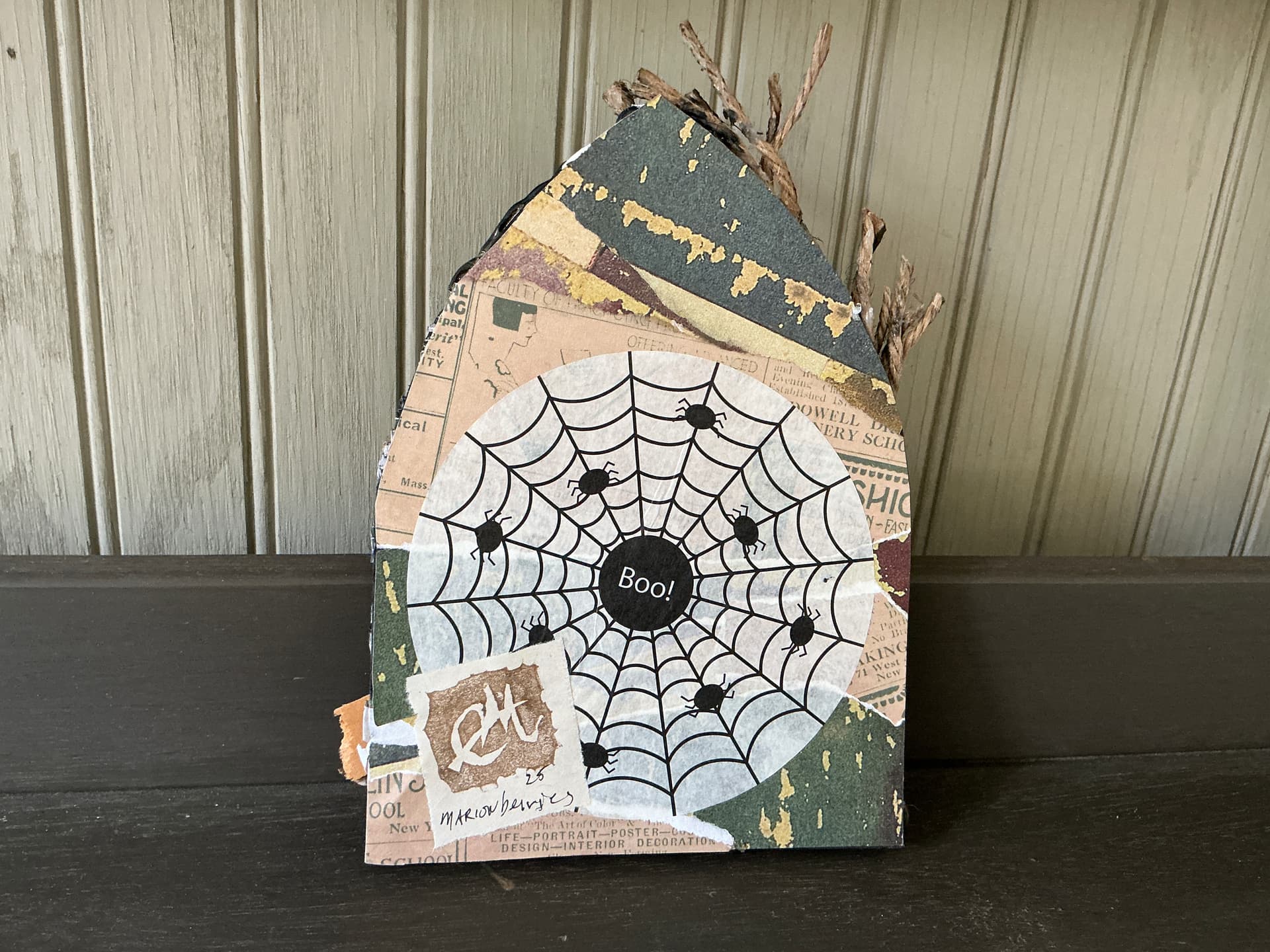 Yes, good old garden twine and lots of Elmers glue and paint. The gate is glue gun and lace. And of course a spider to guard it all.