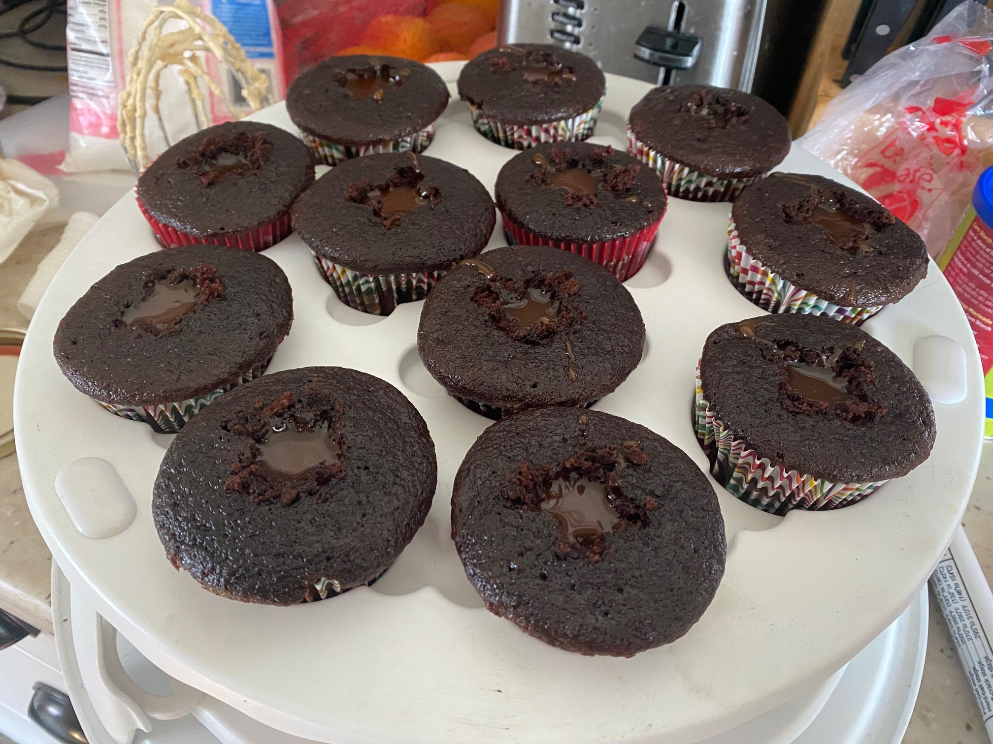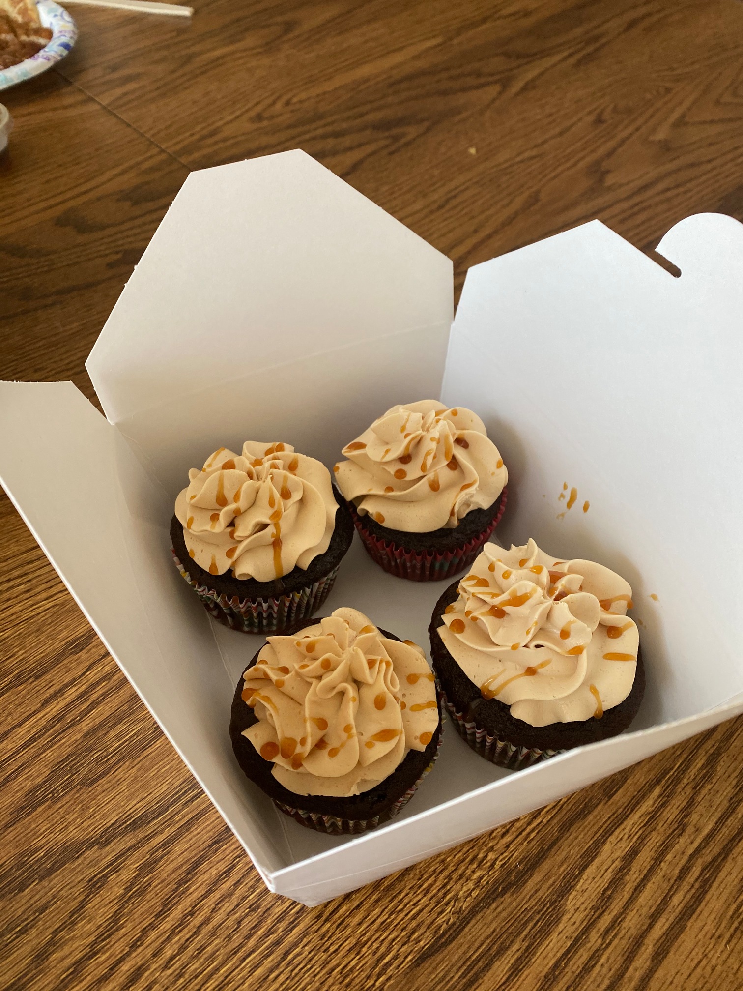 Brief Description: I’ve been craving chocolate cake, so it was time to make a batch of cupcakes. Cupcakes so I could share them with others and not eat an entire cake on my own. I made up chocolate cupcakes, from scratch. I decided on salted caramel frosting. But first, I had to make salted caramel sauce and then the salted caramel buttercream frosting. I scooped out some of the cake and poured in some of the extra salted caramel sauce to make them surprise cupcakes! I drizzled some more on top of the buttercream. They turned out so delicious!!! They are my sister’s favorite cupcakes, and I usually make them for her birthday. On Saturday, we drove all over town delivering the cupcakes to family, sharing the love. <3
