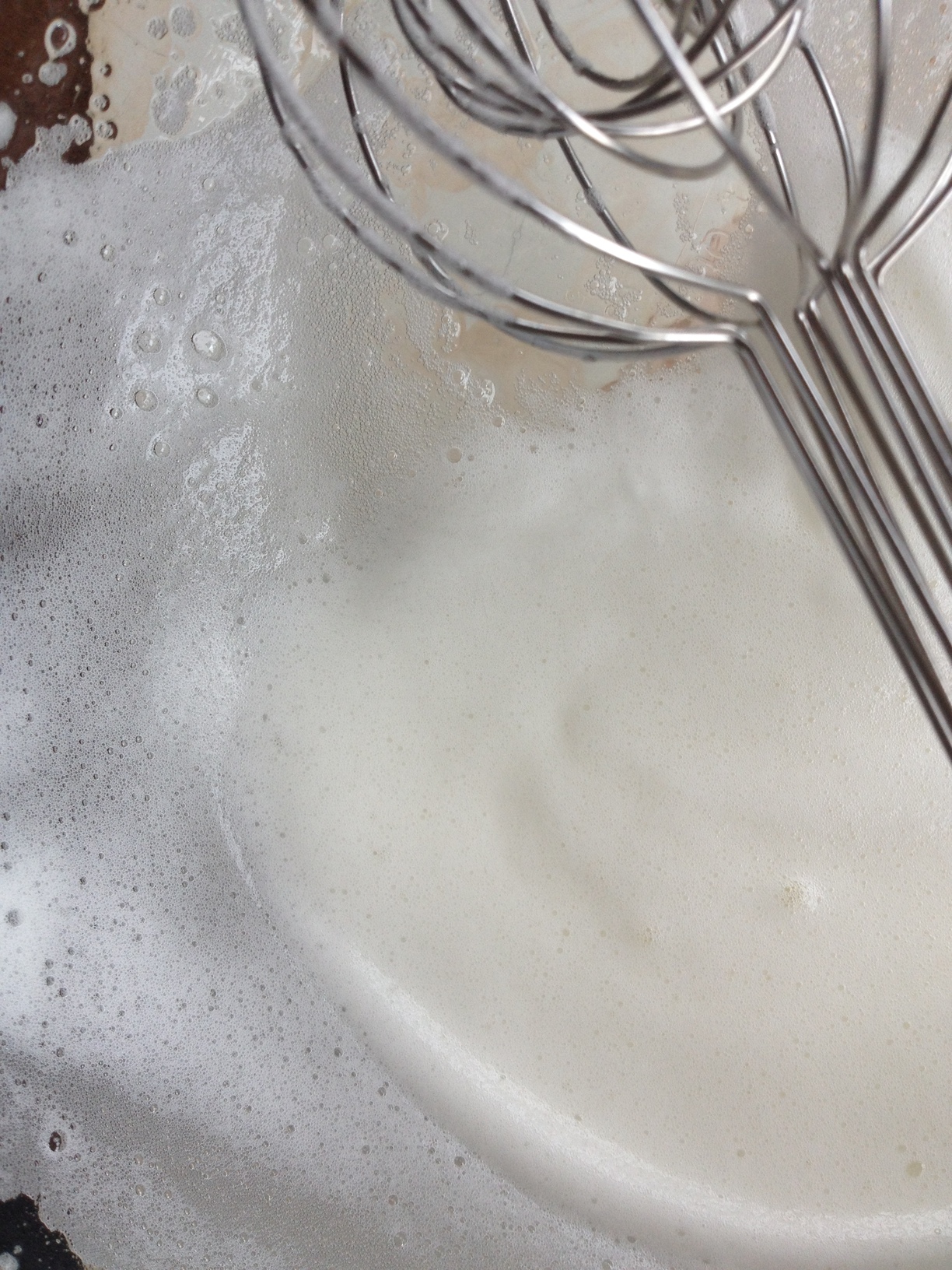 Unfortunately after having begun the recipe and then been unable to locate the cream of tartar that I swear is still in the kitchen somewhere, one tsp of lemon juice instead of the 1/2 tsp of cream of tartar the recipe calls for. Result wasnāt quite as fluffy as it should have been, but it did the job well enough. Couldnāt find my wand either, so I had to beat the Ebublio bubbles into these ingredients by hand via a large whisk and some muscle.