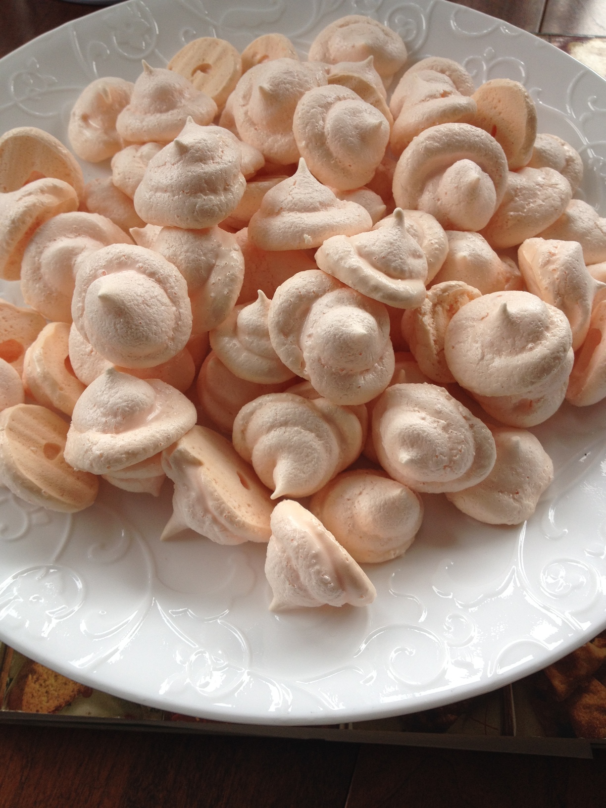 Iāve made meringues by this recipe twice before and Iāve found that this is one of those recipes where the flavors need to blend - the day you make them they are kind of disappointing, but the next day and subsequent days you will want to devour them all they are so good. I added a drop of food coloring this time as I wanted little pink meringues. I had hoped to get a slightly better photo of the finished product but ⦠well⦠they were really delicious and didnāt stick around long enough.
