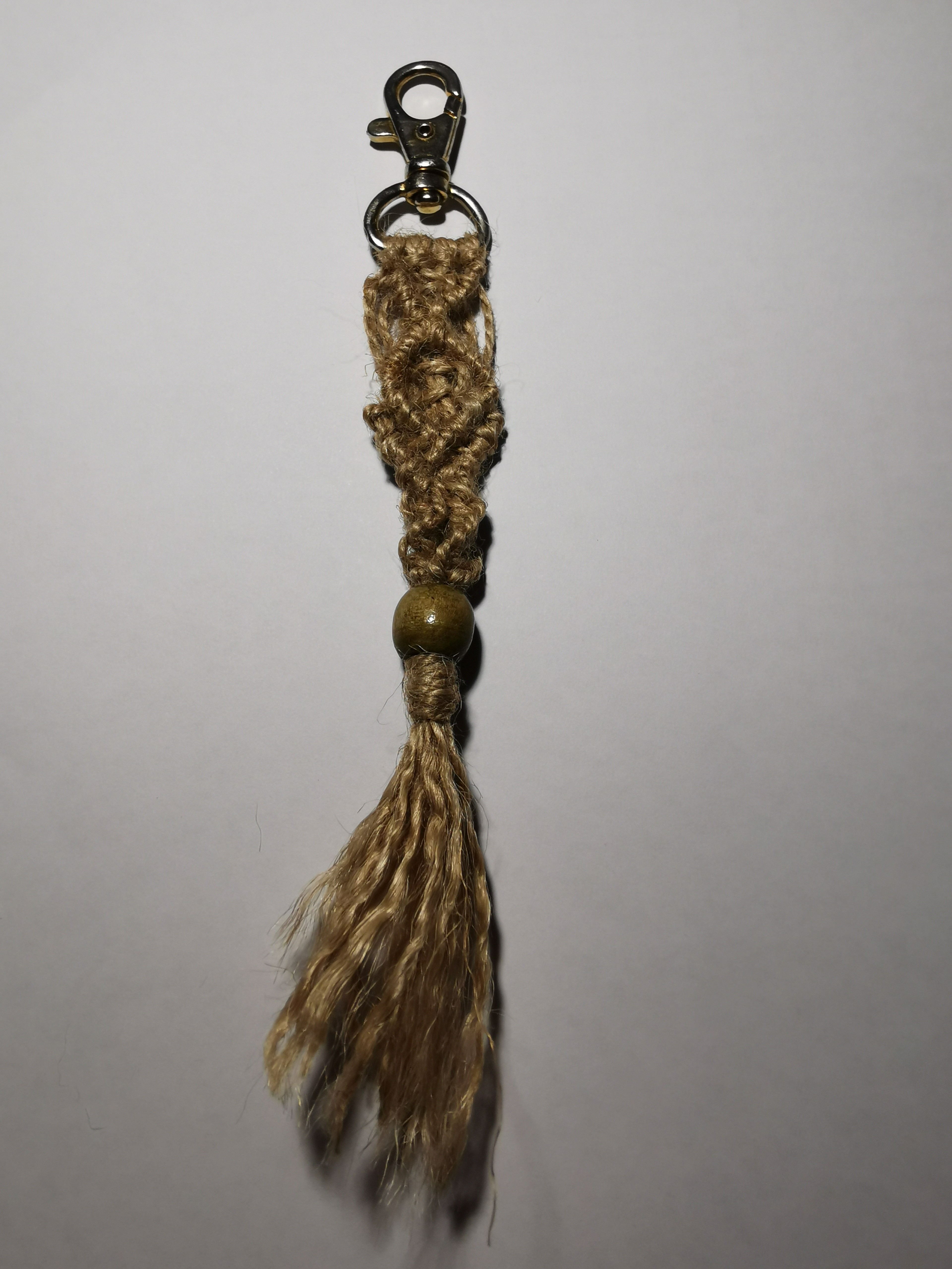 Brief Description: I was challenged to carry out an “old time” craft, so picked macramé. I have done some in the past, but it was a challenge to pick it back up – many youtube videos were watched just to create this small keyring. All parts of this were already in my stash.