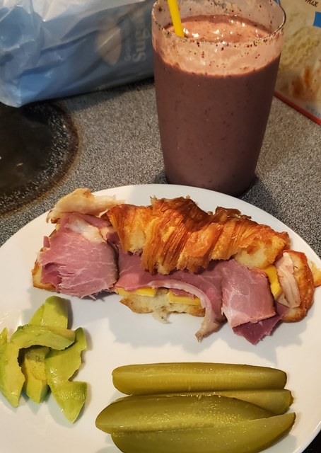 Brief Description: This looks so dumb to submit, but I made a fancy mustard sauce for the croissant sandwiches, which you can barely see on the bottom under the cheese, lol. It was mayo, dijon and whole grain mustard, lemon juice, honey, and garlic powder. Yum.