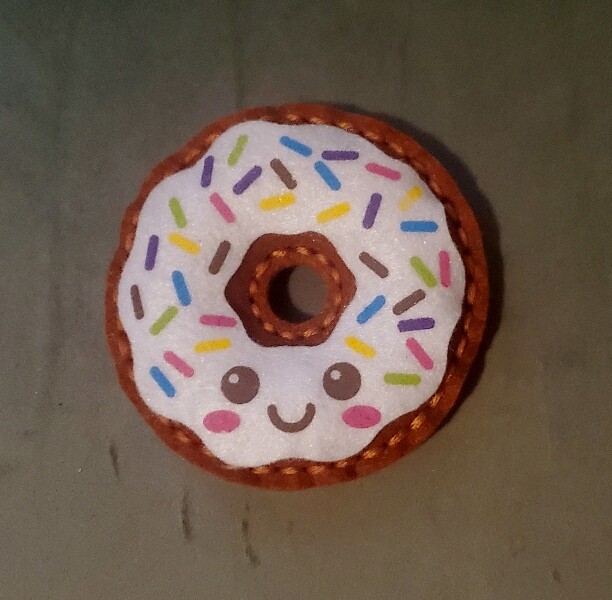 Brief Description: Continuing my easy bed time craft kits, this felt donut is circular and may end up living in my kitchen.