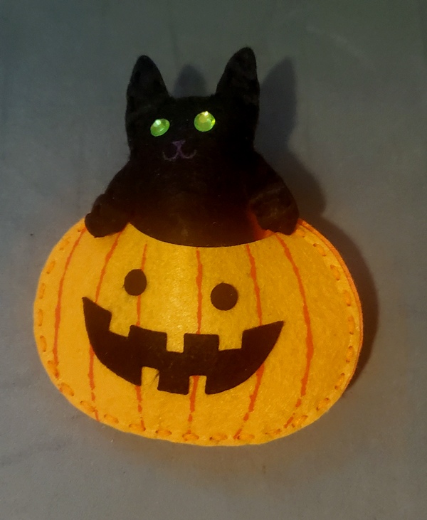 Brief Description: And a felt kitty in a pumpkin.